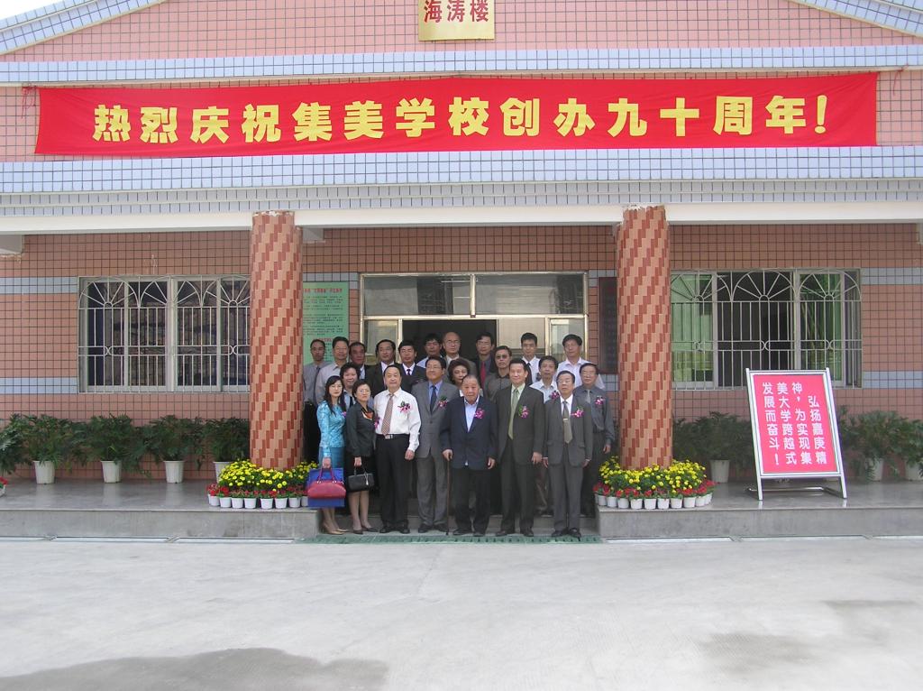 出席集美大学诚毅学院院牌揭幕仪式的领导和嘉宾在海涛楼前合影