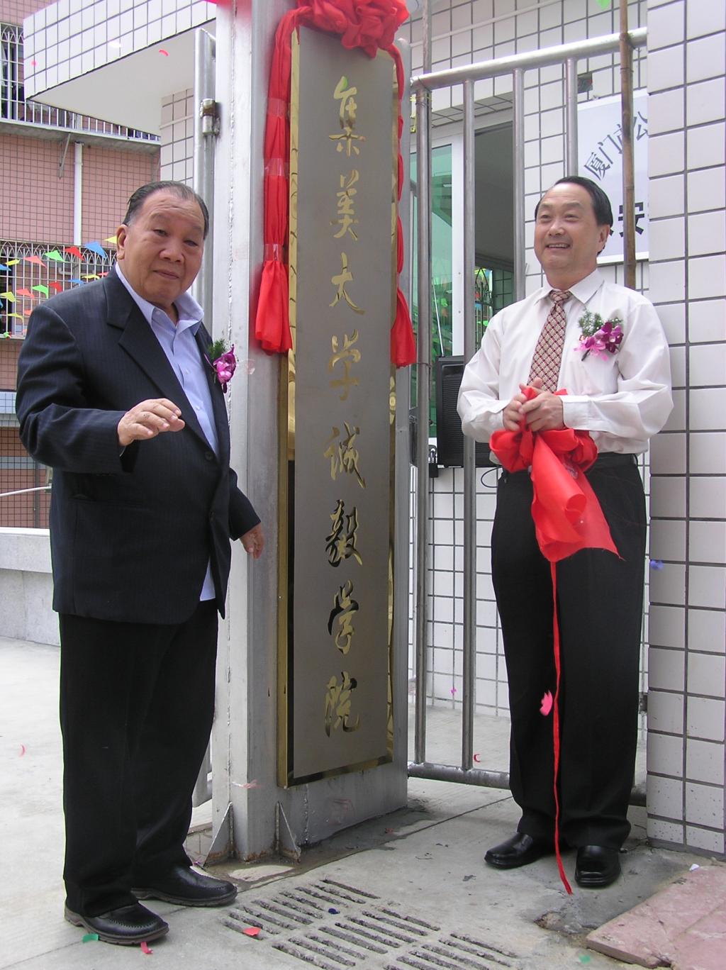 时任集美大学党委书记、诚毅学院首任董事长张向中和集美大学校董会副主席、诚毅学院首任监事长李尚大为诚毅学院揭牌