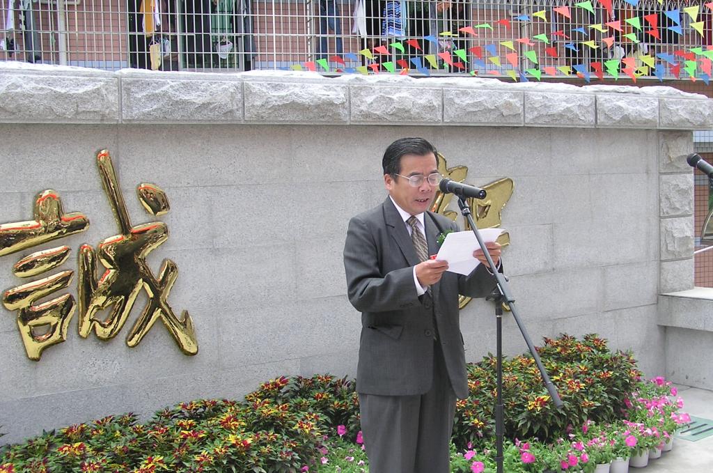 时任集美大学校长、诚毅学院首任院长辜建德在诚毅学院院牌揭幕仪式上致辞