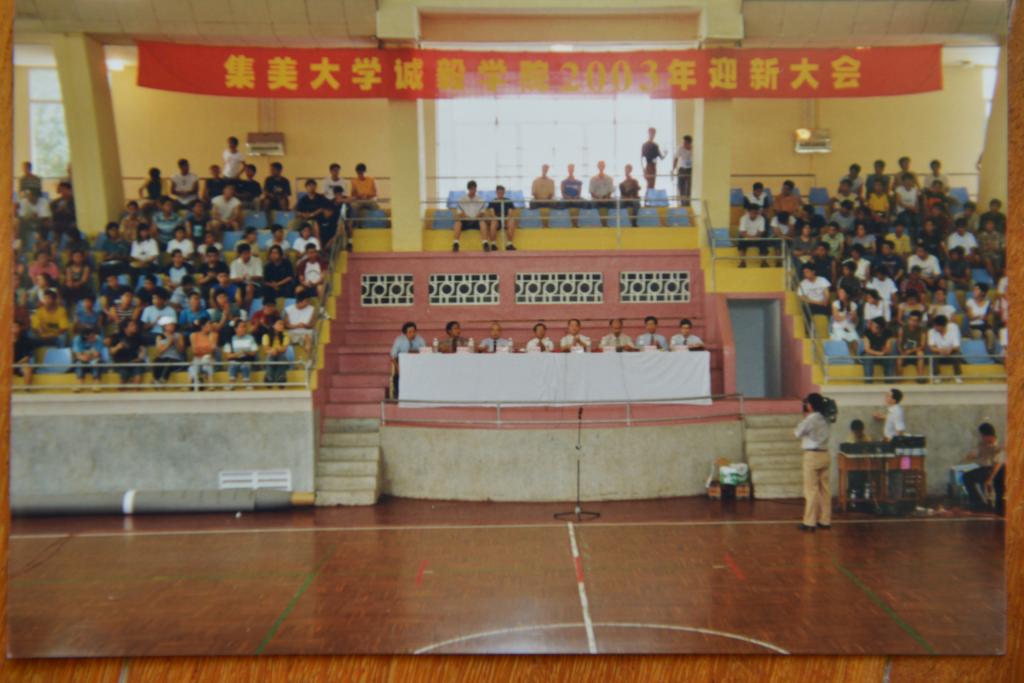 2003年8月31日,学院第一次迎新大会在集美体育馆(今美术设计学院内、科学馆旁)。
