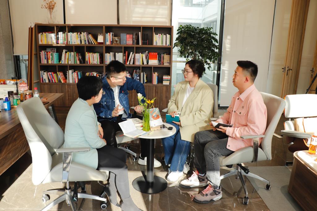 3月14日,外语系办公室主任、校友联络人冯维峰老师和在校生丁雨泓、曾暄一起走进十点读书,对话英语专业2010届校友张铭泉。