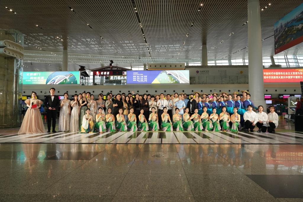 此次活动是我院体育与艺术系艺术课程思政成果的重要体现,进一步推进了艺术教学实践与社会美育服务相融合。演出结束后,体育与艺术系林琳副主任、音乐舞蹈教研室教师们与元翔(厦门)国际航空港股份有限公司相关负责人就艺术教学、创新创业与人文机场建设的深度合作进行深入探讨,以期搭建优质的艺术教学实践平台。