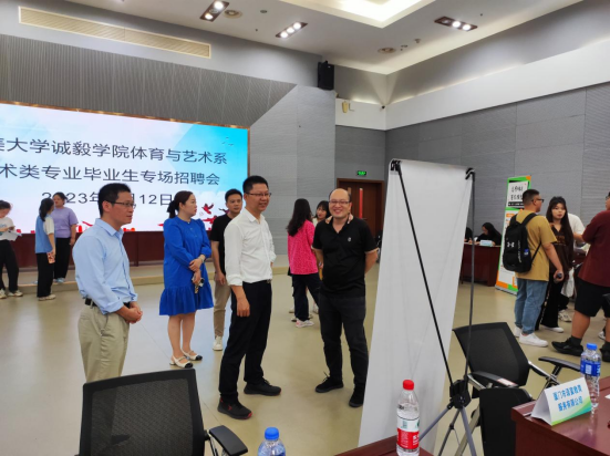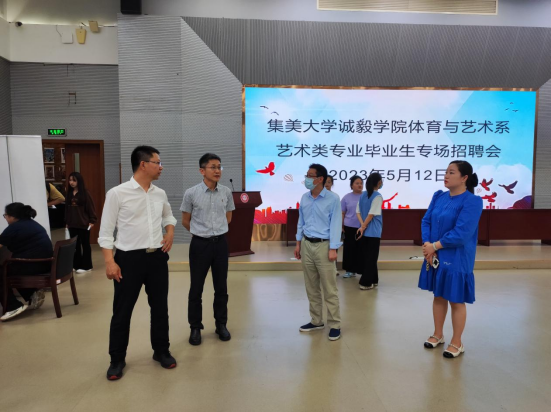 5月12日下午,体育与艺术系2023届艺术类毕业生专场招聘会在景祺楼105报告厅举行。纪委书记陈世昌、院党委副书记颜承志前往现场开展访企拓岗专项行动调研,与参会企业代表展开积极交流,深入调查了解就业市场需求,现场听取用人单位对人才培养和就业工作的意见建议。