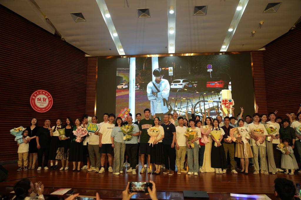 本次晚会不只是一场载歌载舞的晚会,也是一场涵盖感恩意识教育、廉洁诚信教育、奋斗担当教育、校友意识教育等的毕业生主题教育。晚会入场前,所有毕业生共同签署了《廉洁倡议书》,系团总支、学生会为毕业生准备了廉洁书签和纪念章作为毕业纪念。晚会开始前,由毕业班党员方泓涛同学精心制作的视频带领毕业生回忆大学生活的点滴,引起同学们的共情。同时,晚会还邀请了50余位家长到场共同见证同学们毕业的重要时刻,毕业生也暖心地为自己的家长献花表达情意。