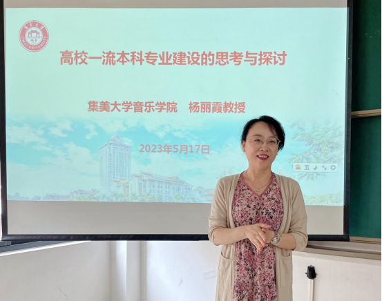 为进一步推动本科专业建设,不断提高专业建设质量与水平,5月17日,体育与艺术系邀请集美大学音乐学院院长、硕士生导师杨丽霞教授举办本科专业建设交流会。会议由体育与艺术系副主任林琳主持,各教研室专业教师参与交流。