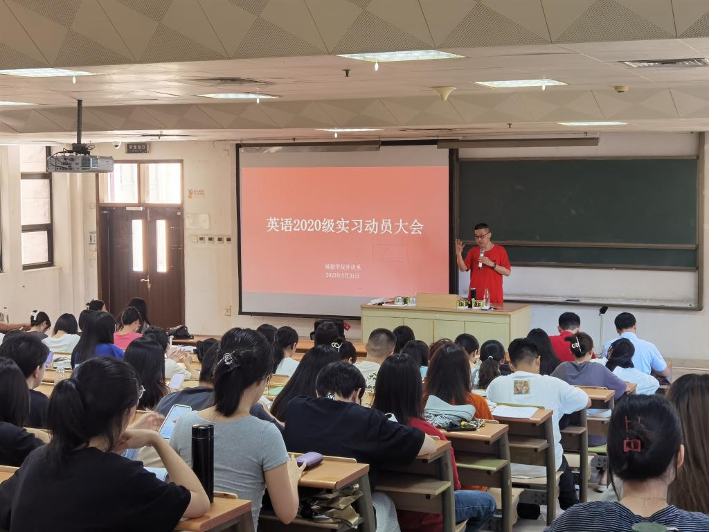 为扎实做好2024届毕业生实习工作,进一步促进学生对所学知识和技能的实践运用和总结深化,引导学生明确认识实习的目的和意义。5月31日下午,外语系在教学楼8-101成功举办英语2020级学生毕业实习动员大会。外语系主任黄玉玺、系党总支书记俞勇,辅导员以及厦门国贸高新数字经济产教融合实训基地校企负责人出席了动员大会,2020级全体学生参加了本次动员大会。