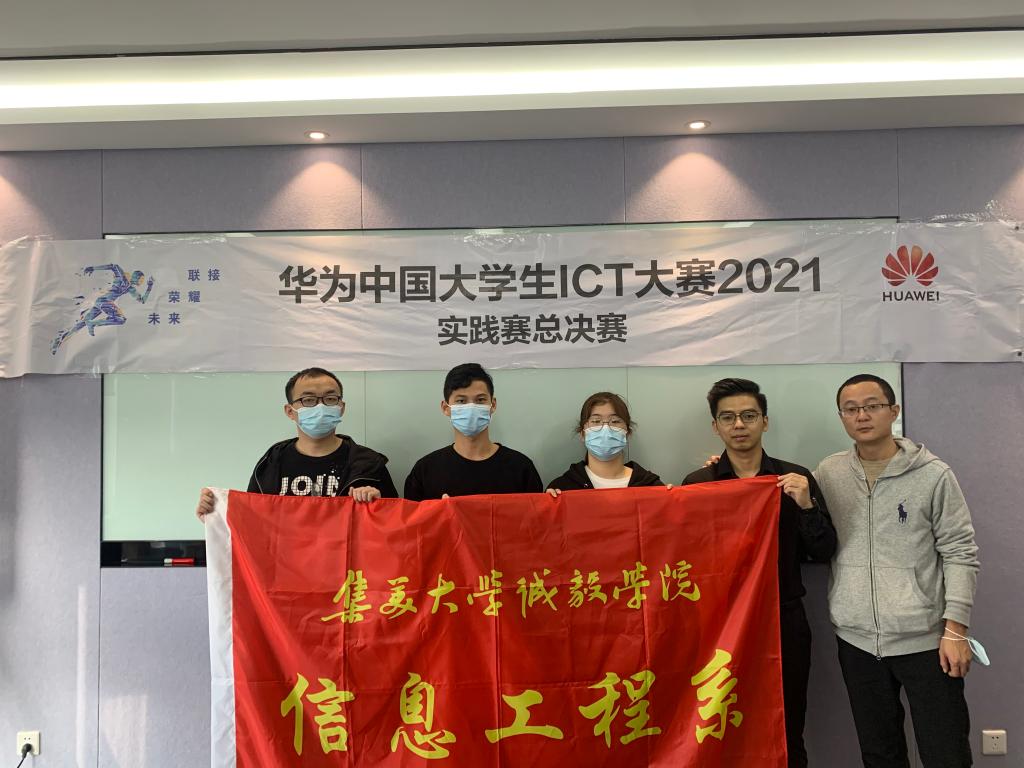 12月25日,华为中国大学生ICT大赛2021全国总决赛落下帷幕,我院信息工程系卓旻坤、陈伟煌、江雨晴三位同学荣获本科组网络赛道全国二等奖,并成功晋级“华为ICT大赛全球总决赛”,是福建省唯一一支晋级全球赛的队伍。