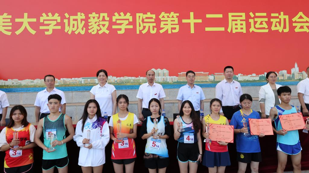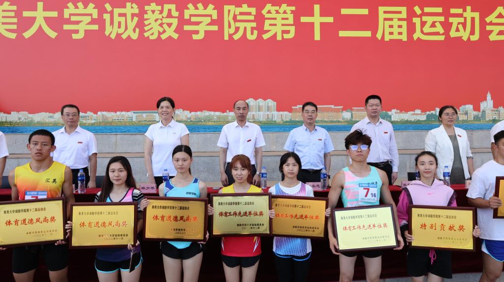 在闭幕式上,陈立新裁判长宣布各比赛单项成绩,杨远智裁判长宣布体测、田径、总锦标成绩,党委宣传部部长林伟毅宣布体育道德风尚奖、体育工作先进单位、特别贡献奖获奖集体。