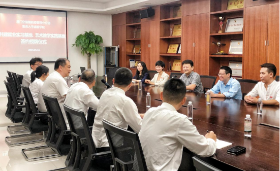 双方就校企合作、校企党建等相关议题进行深入的交流探讨,在人文机场共建、应用型人才培养模式等方面达成共识,并举行了就业实习基地、艺术教学实践基地的签约授牌仪式。