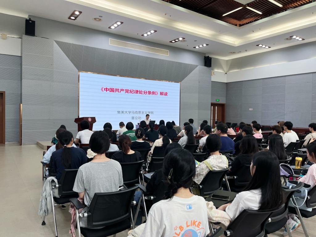 为扎实开展党纪学习教育,让师生党员更好地学深悟透《中国共产党纪律处分条例》,筑牢拒腐防变的思想防线,6月14日上午,数学与数字科学系邀请集美大学党委宣传部副部长、马克思主义学院副教授董立功为全系师生党员作党纪学习教育专题辅导报告。