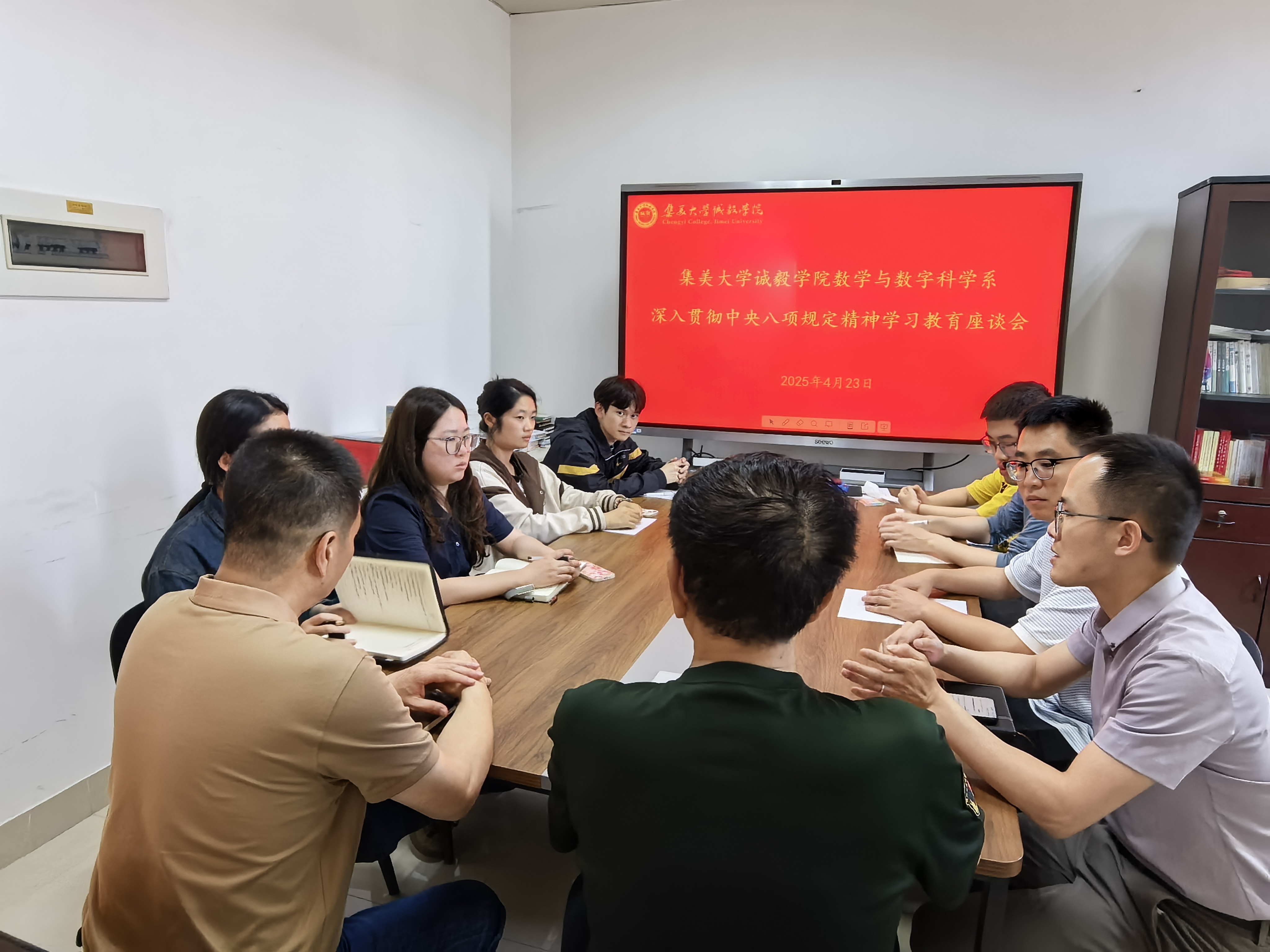 4月23日下午,数学与数字科学系党总支组织召开深入贯彻中央八项规定精神学习教育座谈会,特邀请原武警三峡工程指挥部副指挥长兼参谋长、厦门市老兵宣讲团团长郑道节围绕“勤俭节约”主题开展座谈交流。各党支部书记、学生党员代表齐聚一堂,共同探讨勤俭节约精神的内涵与实践。