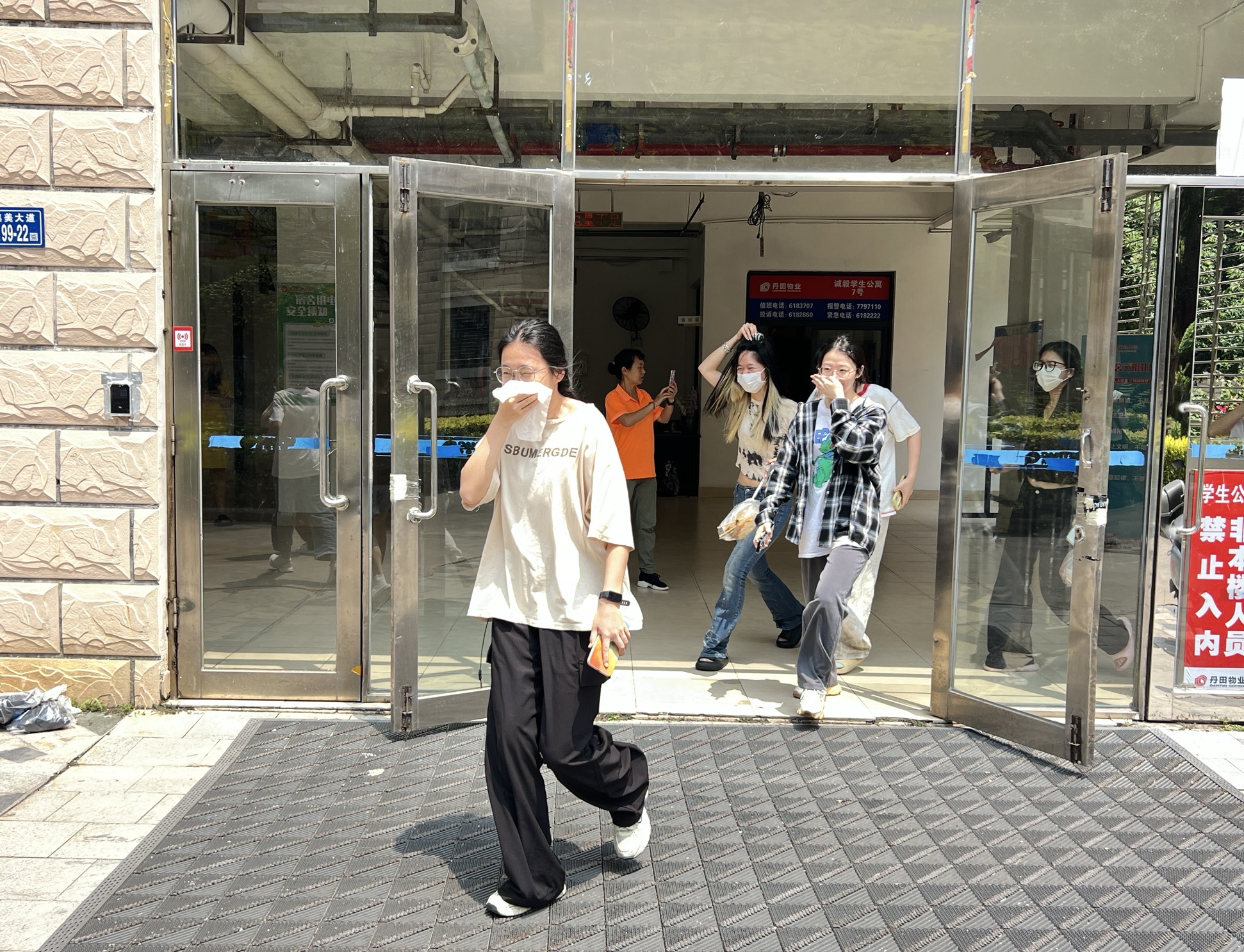 警报响起后,学生们迅速反应,在引导员的指挥下,按照预定疏散路线逃生,同时用湿毛巾捂住口鼻,弯腰低姿有序撤离宿舍楼。疏散过程中,师生们保持冷静,动作迅速而不慌乱,严格遵循疏散指示,短时间内快速撤离到安全区域。