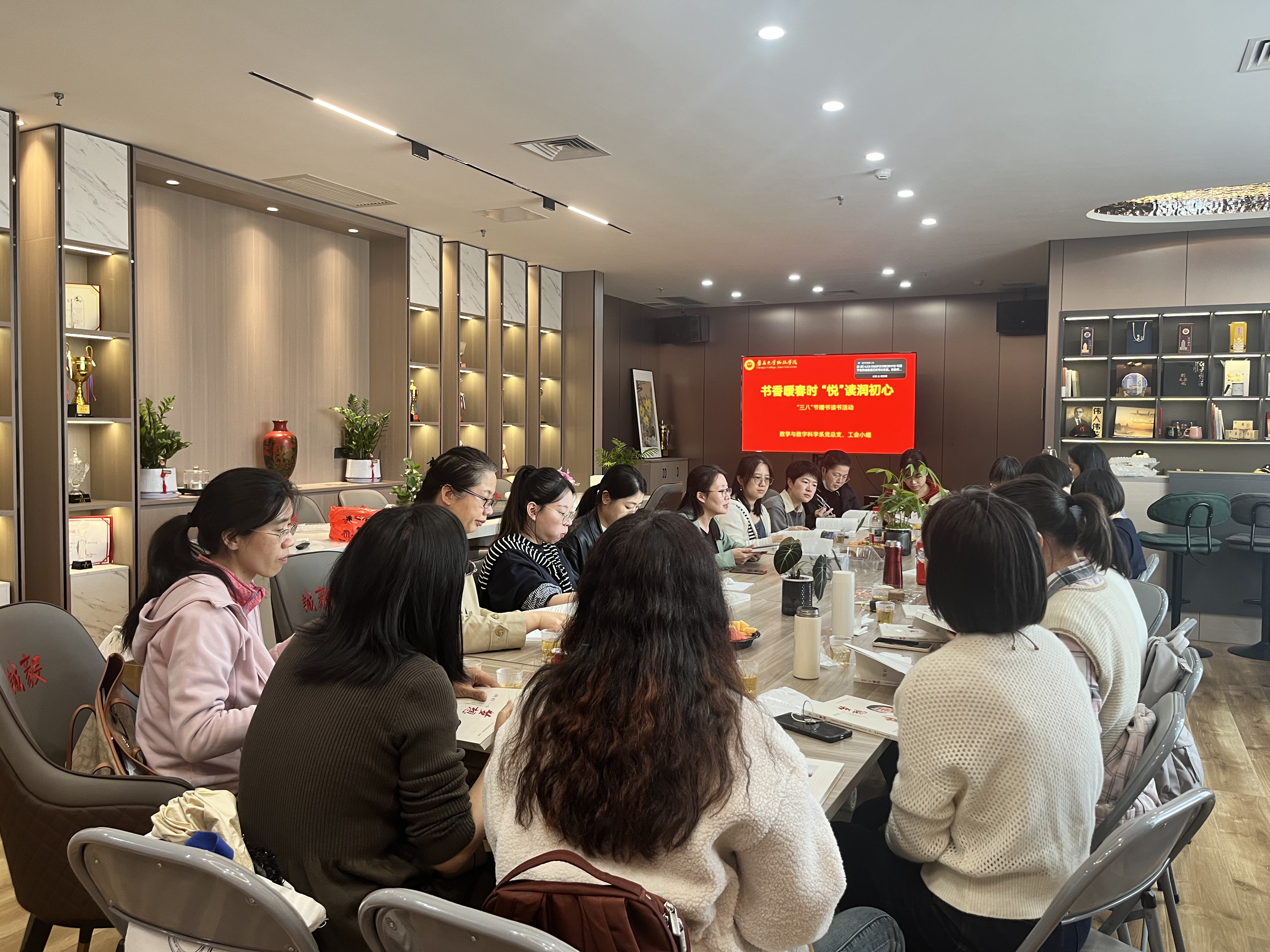 近日,数学与数字科学系党总支和工会小组联合在景祺楼811教工之家开展“书香暖春时 ‘悦’读润初心”“三八”国际妇女节赠书读书活动,全系女教职工参加活动。