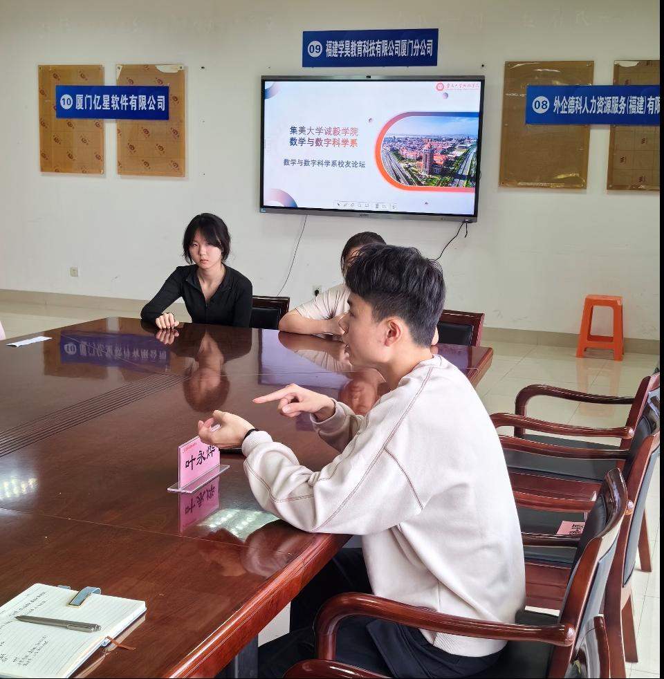 6月5日下午,数学与数字科学系成功举办“思源共叙”诚毅校友论坛。此次论坛邀请2022届数据科学与大数据技术专业校友、目前就读于华侨大学研究生二年级的叶永烨作为嘉宾。