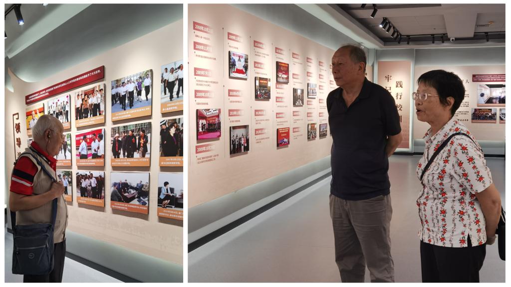 最后,老领导和老教授们在系主任翁苏骏教授和部分专任老师陪同下参观了学院办学20周年成果展,通过影像资料回望了诚毅学院建设和发展的光辉岁月。