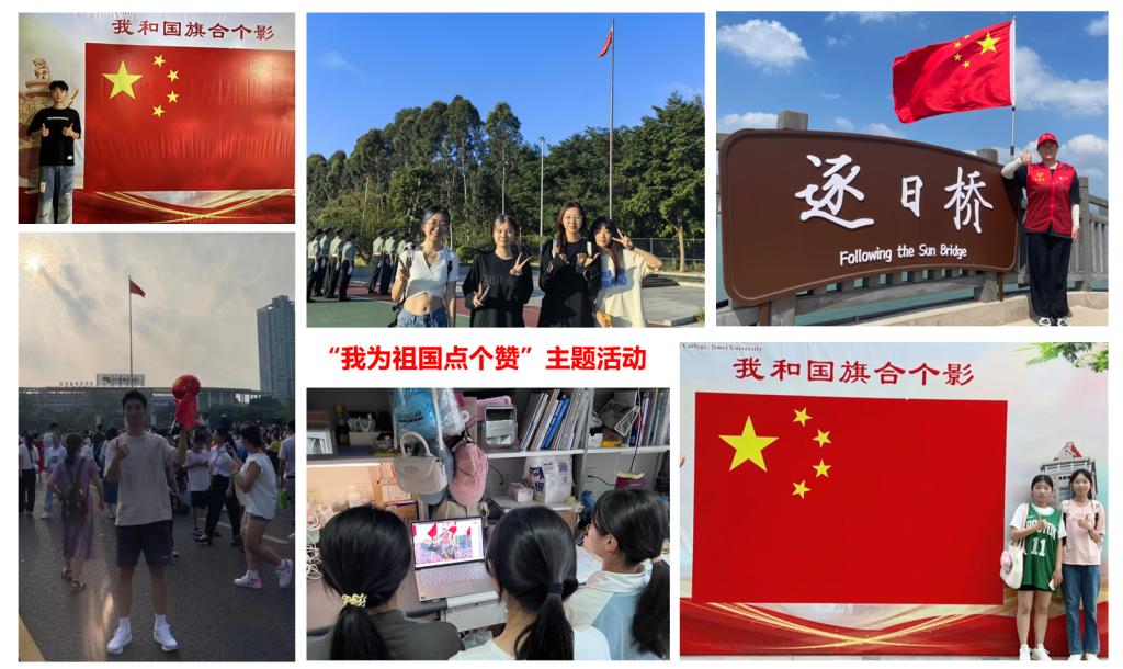 国庆假期中,数科系的同学们或积极参与学院等单位组织的升旗仪式,或通过网络观看北京天安门升旗仪式,通过合影留念、诗歌朗诵和视频记录等多种方式,以镜头致初心,为祖国华诞庆生,以快门继传承,为民族复兴点赞。