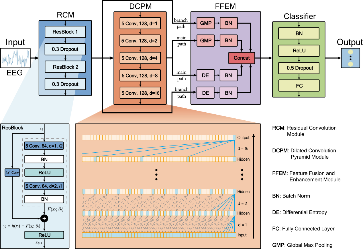 癫痫作为全球约5000万患者面临的常见神经系统疾病,传统诊断方法依赖人工特征选择且泛化能力不足,其准确诊断一直是临床医学的难题。针对这一痛点,大数据分析实验室历时一年多,自主研发出新型深度学习模型RDPNet,创新性地将残差卷积、膨胀金字塔结构与微分熵特征融合,可有效提取脑电信号中的复杂时序与统计信息,能显著提升癫痫状态的自动识别能力。实验表明,RDPNet在多个公开脑电数据集上的识别准确率均显著优于现有主流方法,展现出良好的临床应用前景。