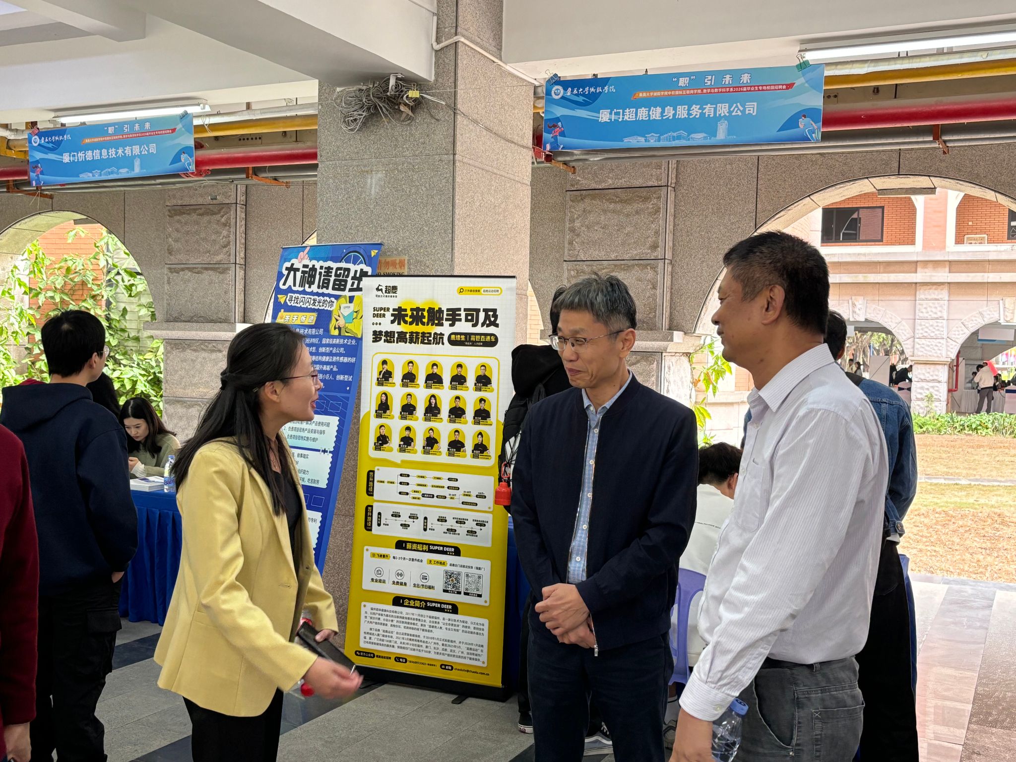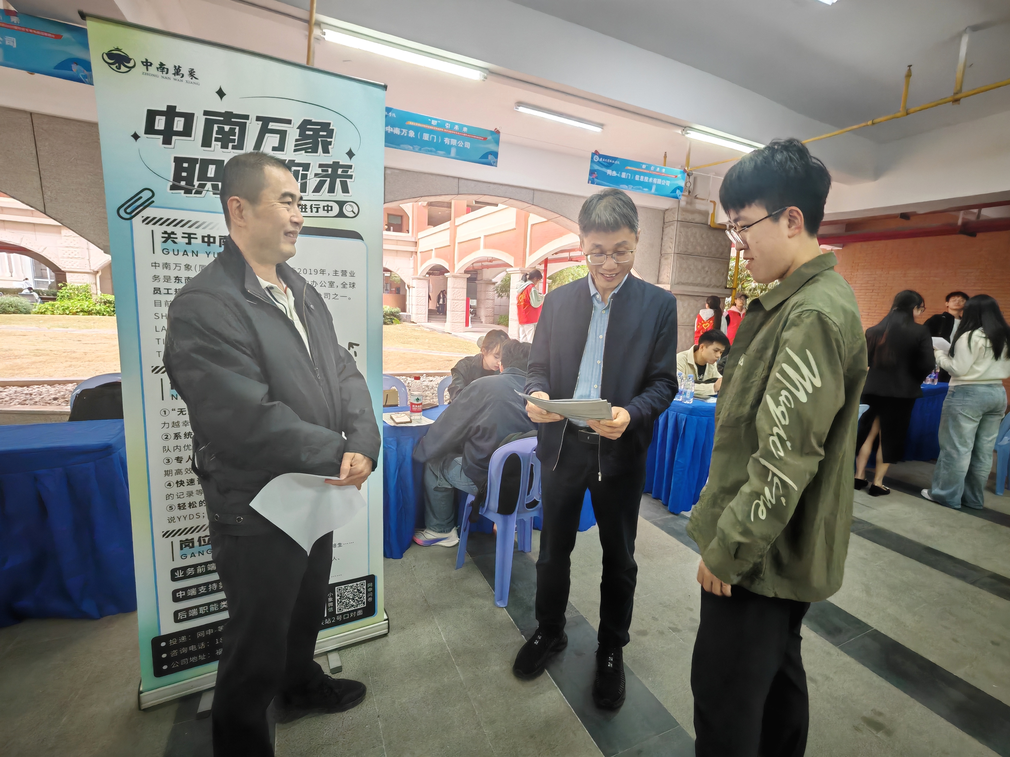 2025年11月19日下午,“职”引未来——集美大学诚毅学院中软国际互联网学院、数学与数字科学系2026届毕业生专场校园招聘会在教学楼13号楼架空层成功举行。翔安区人社局三级调研员林辉玲,诚毅学院党委副书记颜承志、就业办主任陈小平,以及翔安区就业中心、翔安区总工会等有关负责人亲临现场,与用人单位、毕业生亲切交流。两个教学系(院)党政领导班子、专任教师及毕业班辅导员全程参与,保障招聘会高效推进。