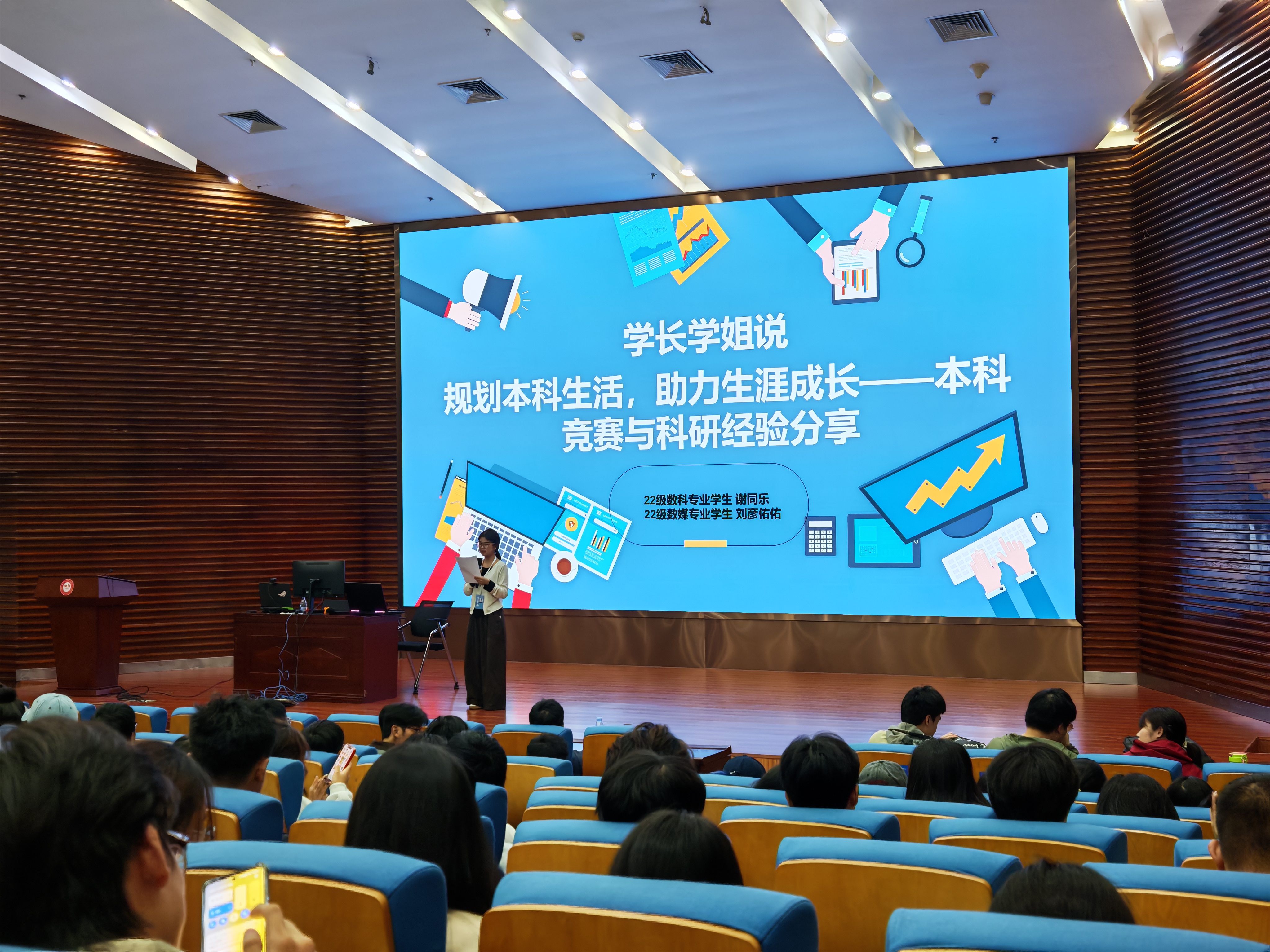11 月 23 日晚,数学与数字科学系精心策划的“学长学姐说大学生活——聊聊我们的大学竞赛与科研生活”热烈开启。来自2022级数据科学与大数据技术专业的谢同乐、数字媒体技术专业的刘彦佑佑,以《规划本科生活,助力生涯成长——本科竞赛与科研经验分享》为题,共同为2025级新生带来了一场知识与智慧交融的盛宴。