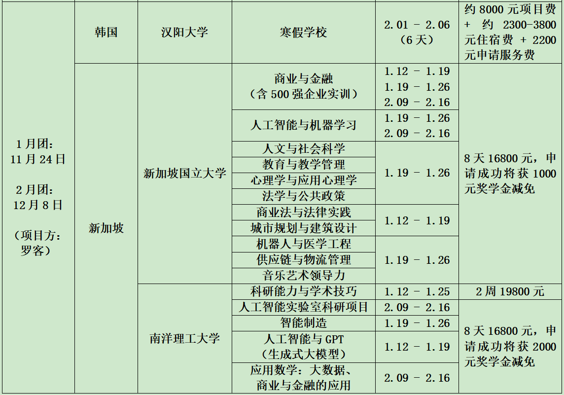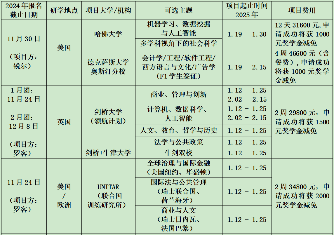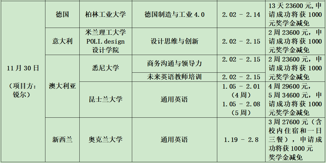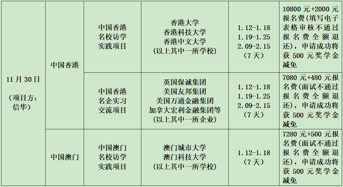 为助力学生拓宽国际视野,积累海外学习和生活经验,我院现启动2025年寒假出国(境)研学项目报名工作,请有意参加的同学尽快报名,申请成功的我院学生将获500-2000元奖学金减免。往期研学经验分享请移步对外交流合作部官网“诚毅人看世界”栏目:http://cydwhz.jmu.edu.cn/cyrksj.htm。