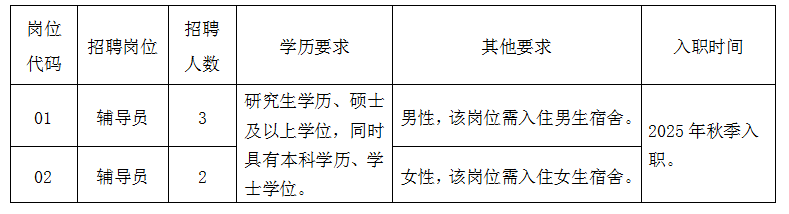 2、集美大学诚毅学院辅导员应聘信息简表-2025版