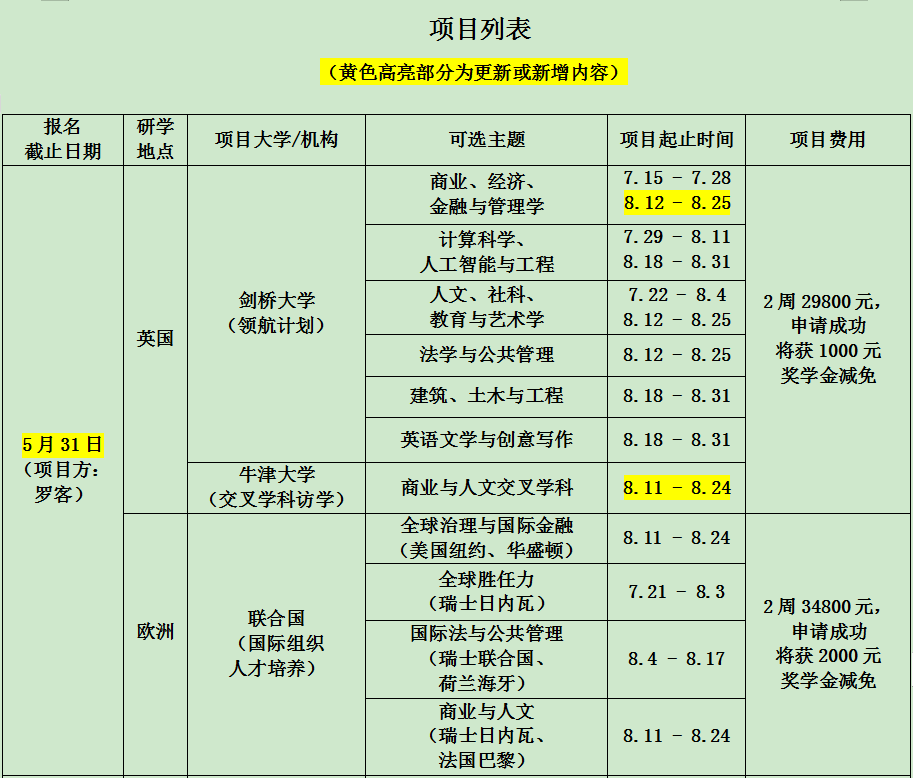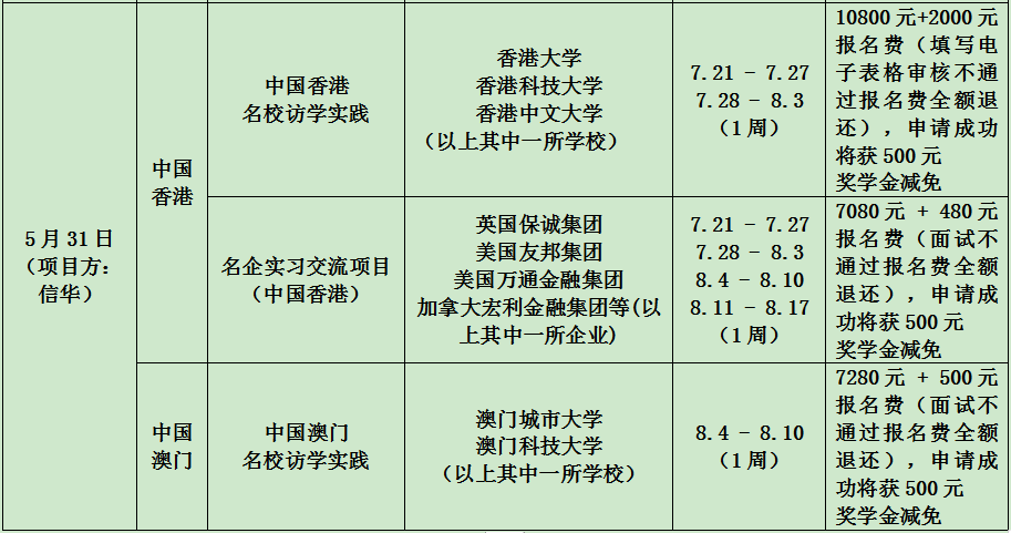 项目方报名截止日期见下表,完成外方报名后5个工作日内请完成院内报名:请完整填写集美大学诚毅学院学生出国(境)交流学习申请表(可机打)和集美大学诚毅学院学生出国(境)交流学习家长/监护人知情同意书(见附件),学生和家长/监护人本人签字后(异地可电子签)依次找教学系(院)辅导员和书记、学工部和教务部负责人签字盖章,提交至对外交流合作部(景祺楼1206),联系电话:6182952(关老师),邮箱:120573042@qq.com。