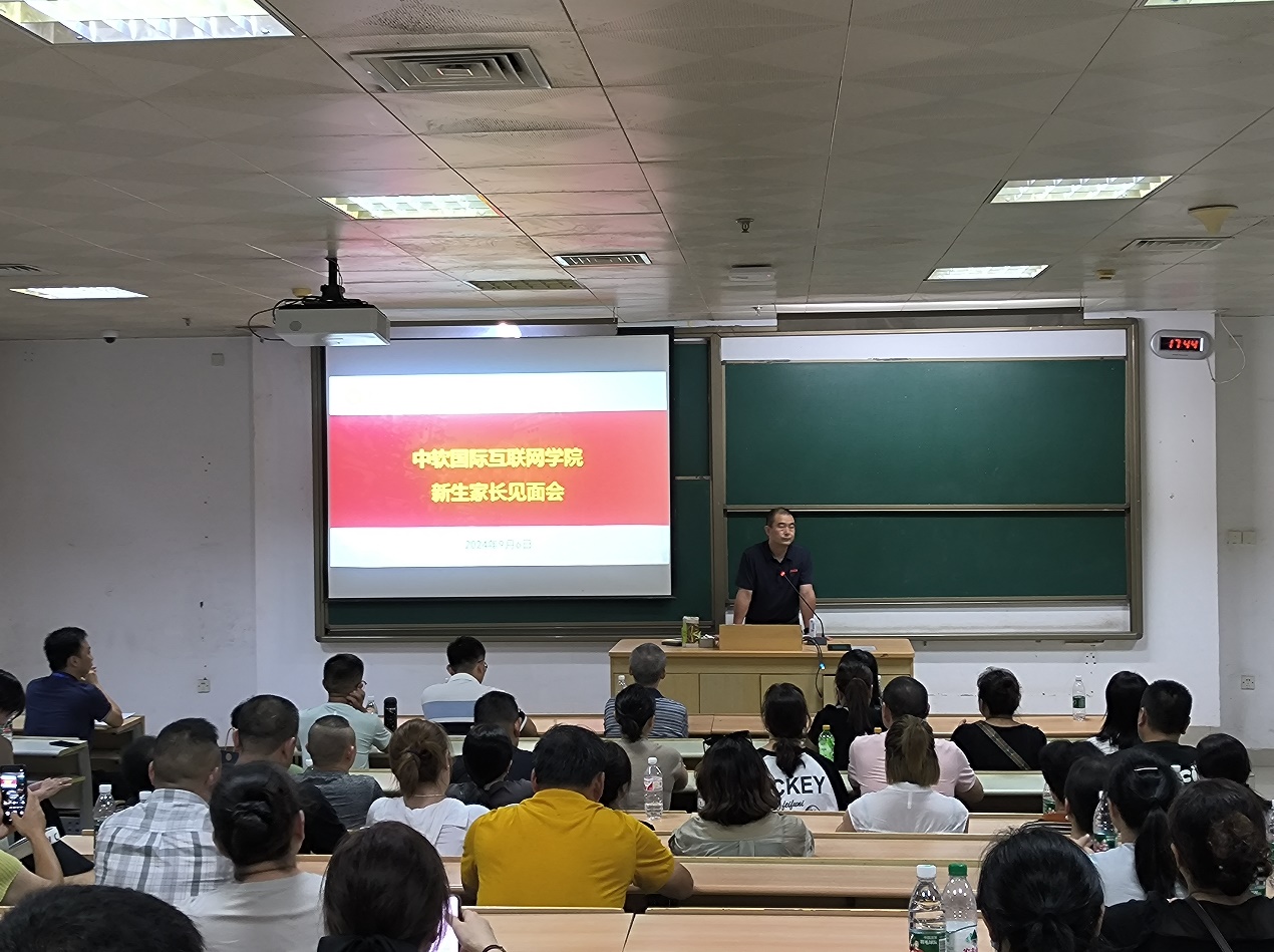为深入贯彻落实立德树人根本任务,加强学院与新生家长之间的沟通交流,进一步凝聚家校协同育人合力,9月6日下午,中软国际互联网学院在教学楼3-207召开2024级新生家长见面会。中软国际互联网学院党总支书记杨鹏聪,院长黎世学,副院长陈亚洲,副院长(企业方)苏洪球,中软国际教育科技集团教学总监吴晓毅,新生辅导员及部分新生家长参加会议。