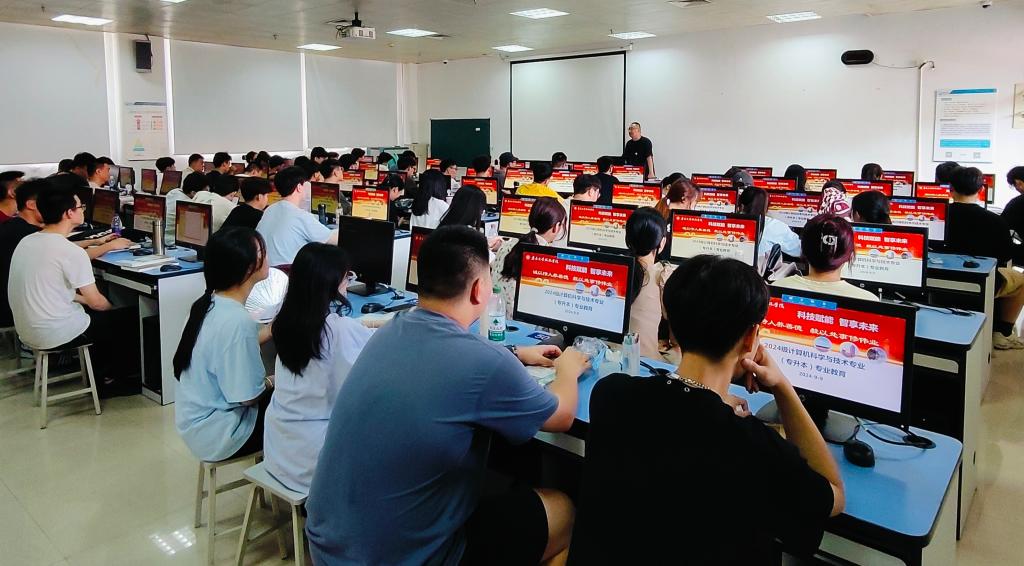 为帮助新生更精准地把握专业精髓,清晰描绘未来蓝图,科学规划本科学习路径,信息工程系副主任武斌于2024年9月9日为2024级计算机科学与技术专业(专升本)新生开展专业教育。