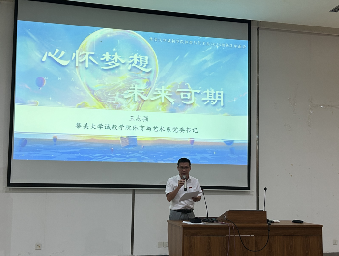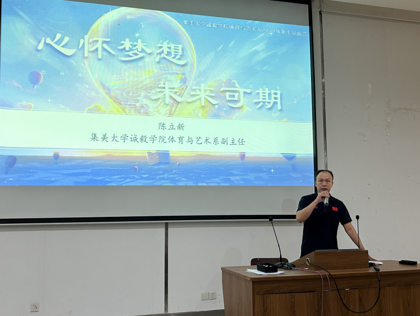 9月6日下午,集美大学诚毅学院体育与艺术系“心怀梦想 未来可期”2024级新生见面会在教学楼5-101举行。系党委书记王志强、副主任林琳、副主任陈立新、主任助理李明、组织员陈婧、各专业新生辅导员、教师代表,以及2024级本科新生及家长参加活动,会议由系办公室主任叶凯主持。