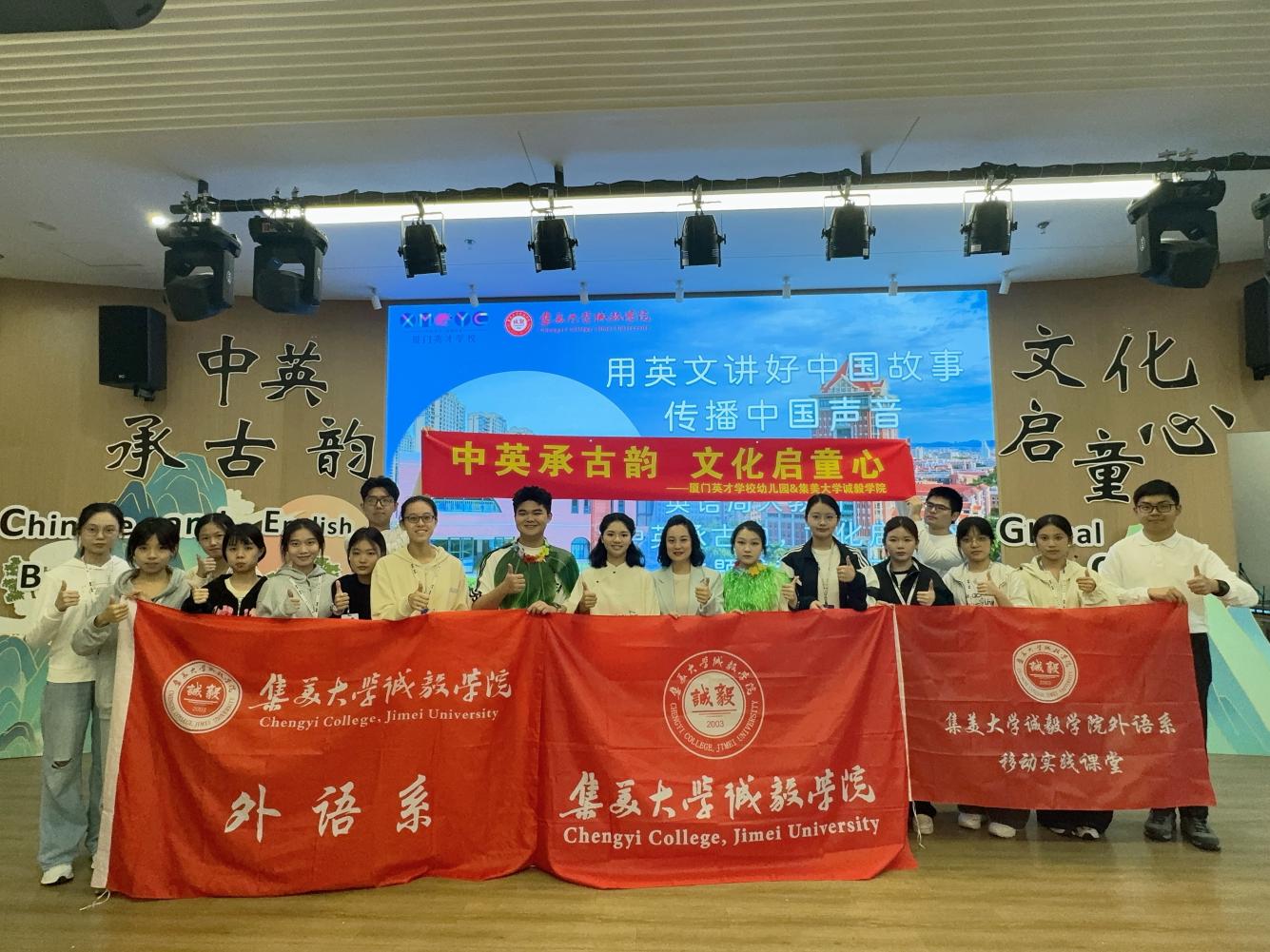 11月20日,外语系英语(师范)2291与2292班的18名学生,在戴文疾老师的带领下,走进英才幼儿园,开展“中英承古韵,文化启童心”主题实践教学活动。