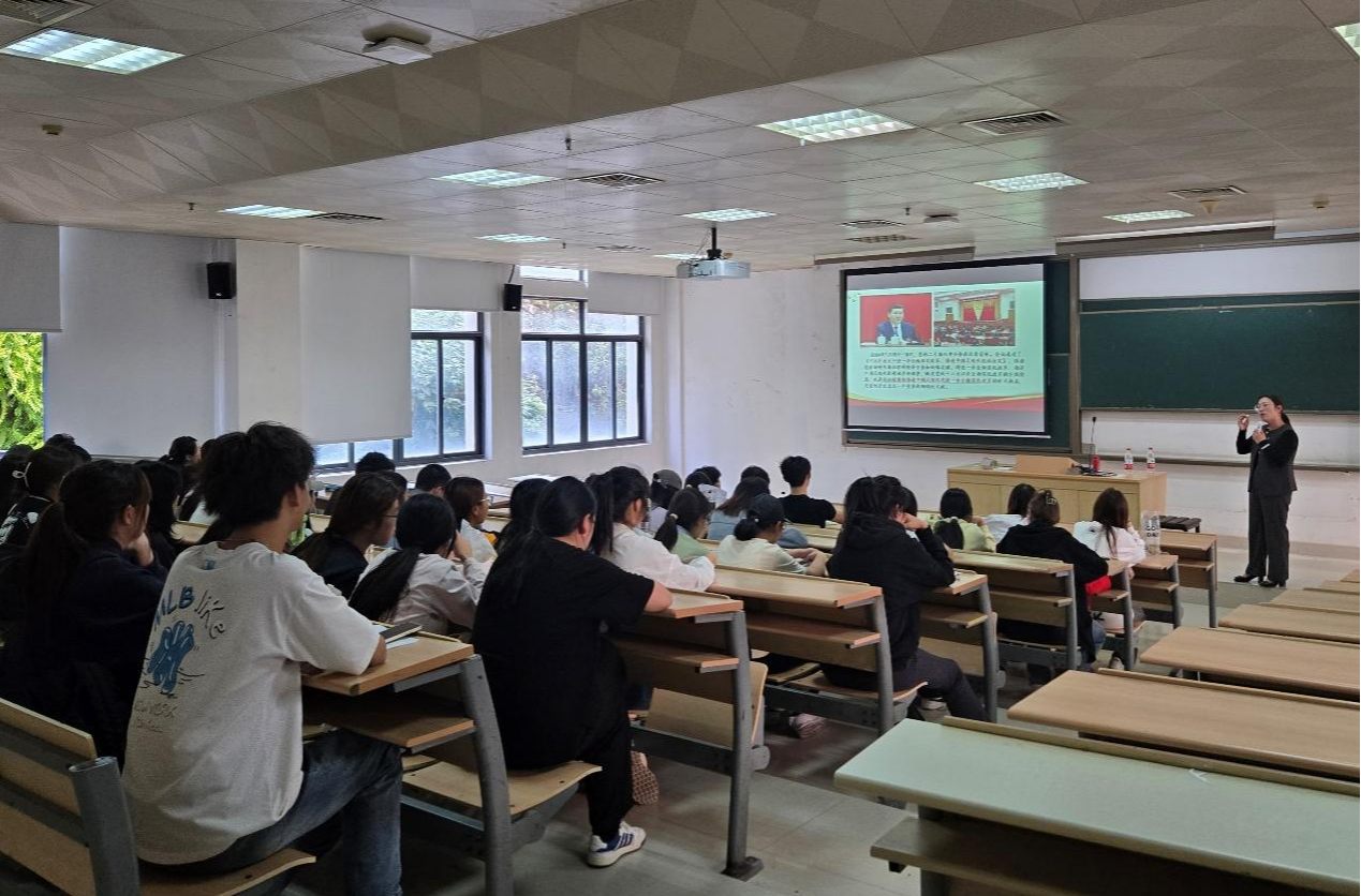 为深入学习贯彻党的二十届三中全会精神,深刻领会和把握进一步全面深化改革的时代意蕴,12月4日下午,外语系面向英语专业商务方向全体学生开展“新征程上进一步全面深化改革——学习领会党的二十届三中全会精神”专题讲座,邀请我院马克思主义学院副教授林颖作现场分享。