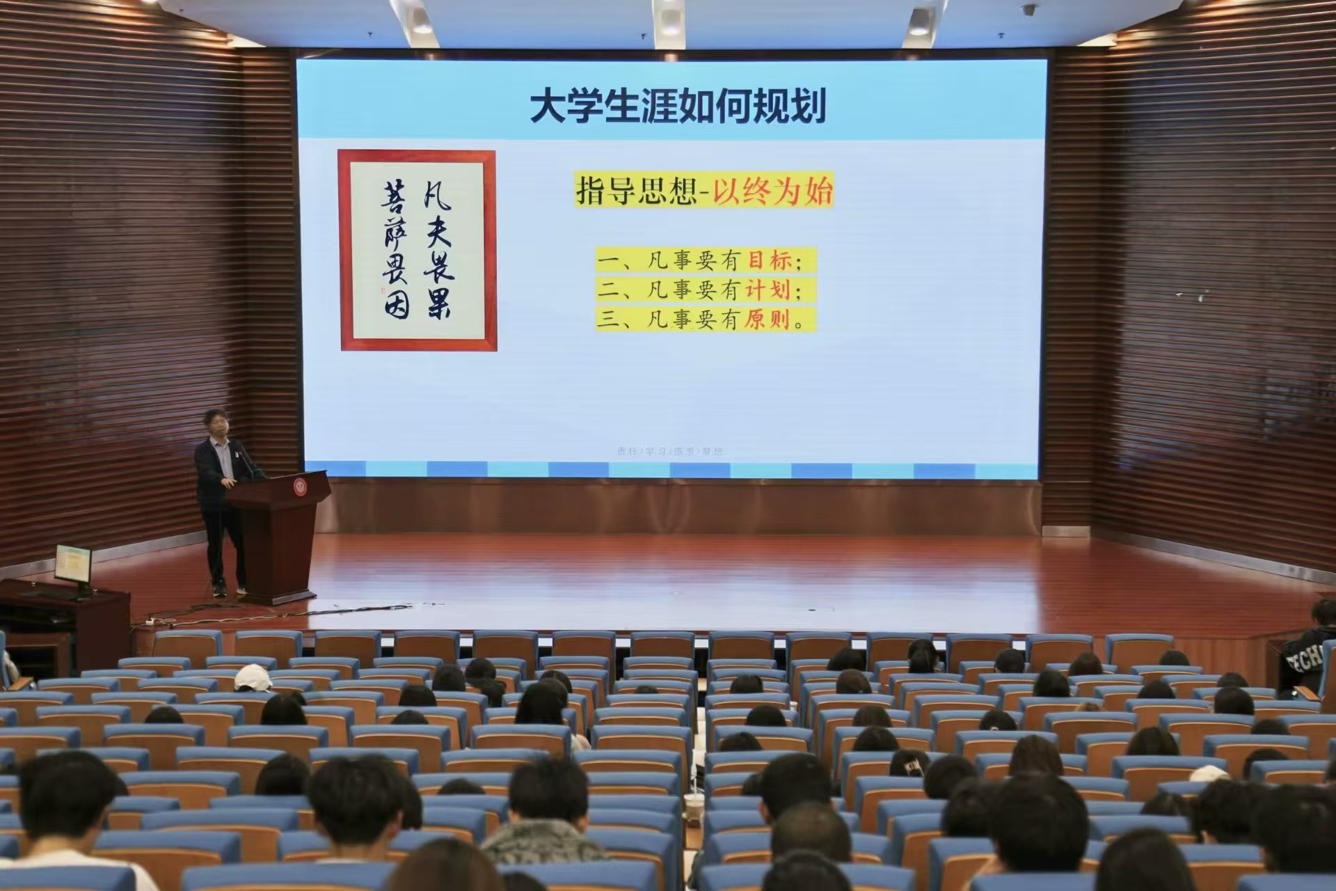 江来分享了当前就业形势,介绍了职业所必须的技能与素质,并提供了职业探索方法,帮助在场同学提前了解职场;同时,他讲述自身经历,鼓励新生学子充分了解并深入研究自己的专业,做到“学一行爱一行”。讲座以生动的案例和详实的数据,展示了生涯规划对个人成长与职业发展的深远影响,强调了清晰的目标设定、良好的自我管理和时间规划的重要性,鼓励同学们明确目标,关注三大发展优势,多听、多看、多写、多说、多做,将大学当作蓄势、厚积、赶超的时间段,珍惜时间,提升自我。