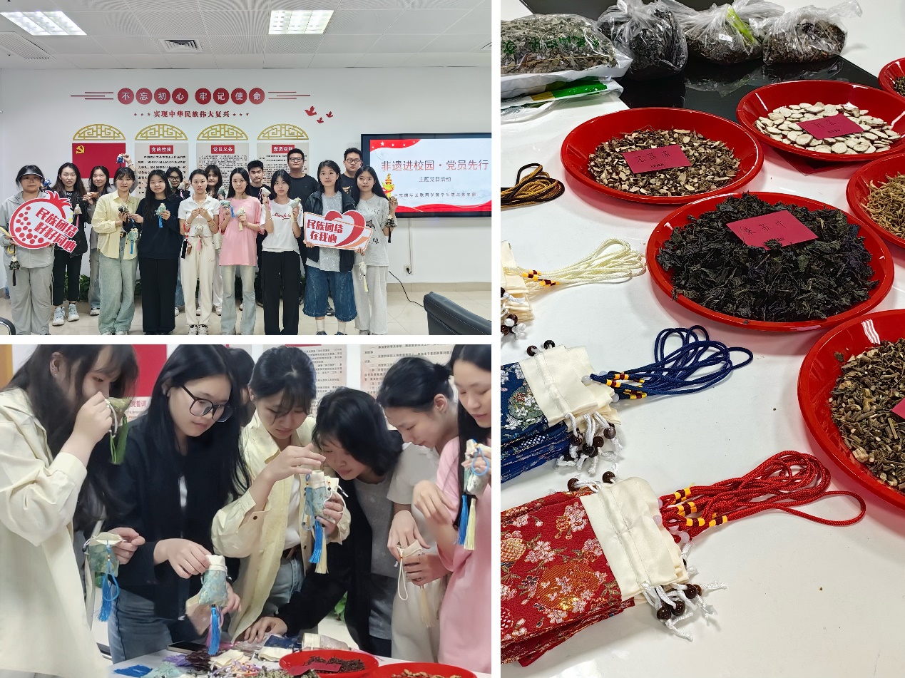 活动中,实践队员从畲医畲药的悠久历史入手,深入浅出地讲解了畲药的独特药效与文化价值。通过现场演示,详细介绍了畲药香囊的制作工艺,让同学们在动手实践中体会畲药文化的深厚底蕴。活动以"各美其美,美美与共"的文化共识为指引,帮助同学们在亲身实践中树立文化自信,进一步根植爱国主义情怀和民族精神,为铸牢中华民族共同体意识注入了新的活力。