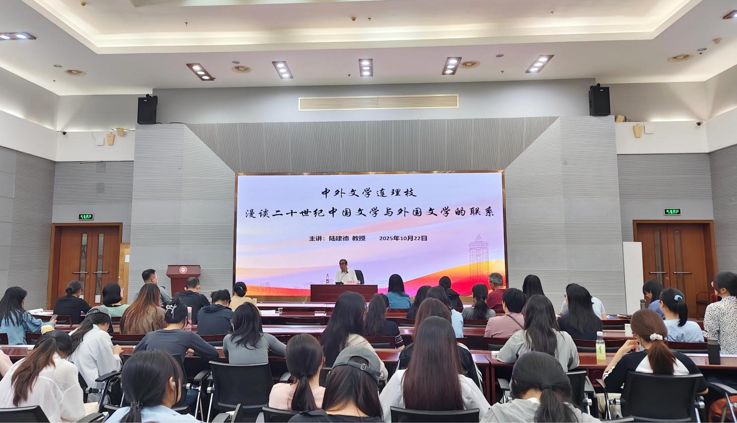为营造浓厚学术氛围,助力学生成长成才。10月22日下午,外语系主办的“中外文学连理枝——漫谈二十世纪中国文学与外国文学的联系”学术讲座在景祺楼105报告厅顺利举行。讲座特邀中国社科院外文研究所著名学者、厦门大学讲座教授、比较文学与跨文化研究中心主任陆建德教授主讲,外语系全体专任教师及英语2023级学生参加讲座。