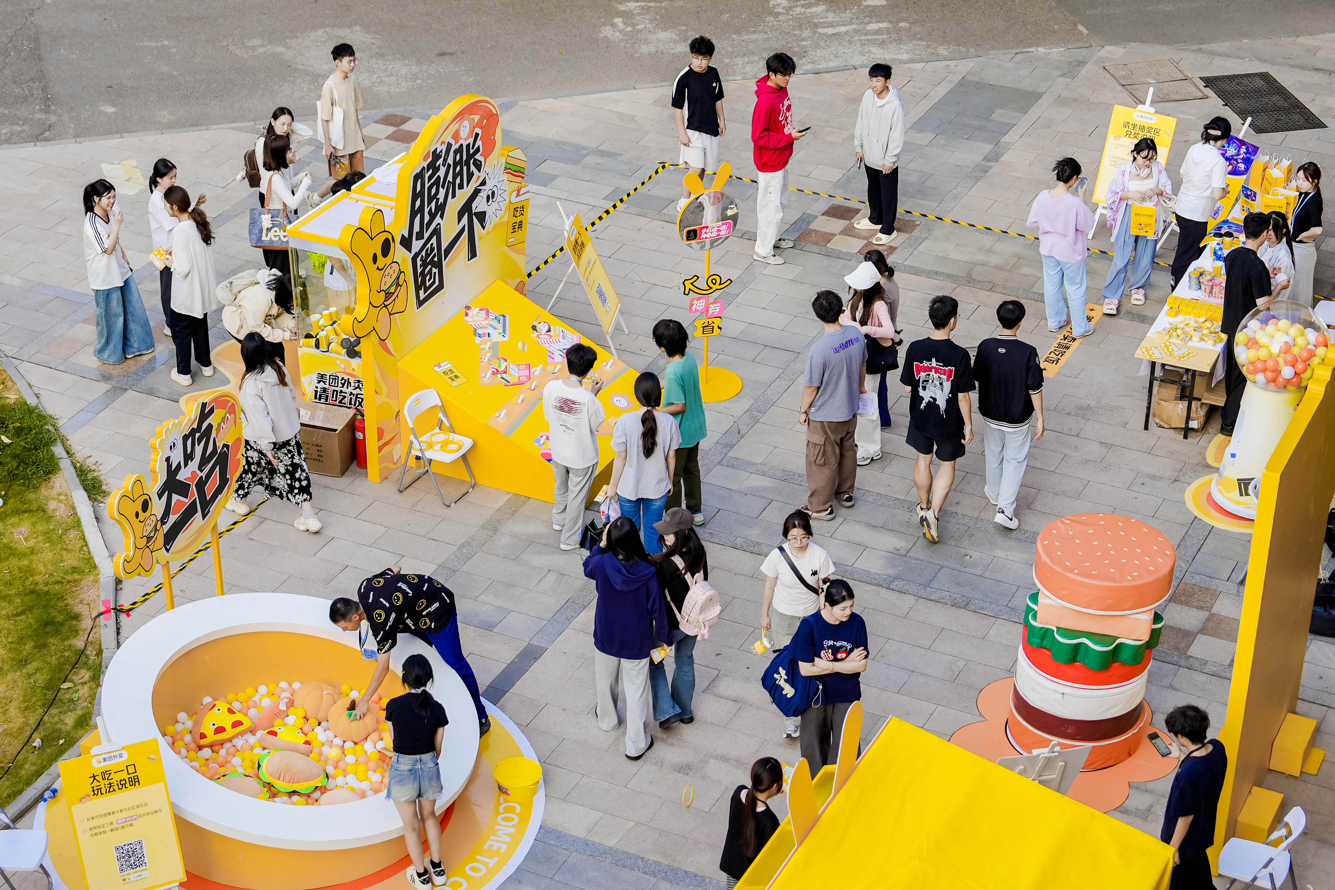 本次活动较往年更关注大学生的互动趣味体验,除在原有基础上开放营业摊位区、live表演区外,首次与美团合作升级优化了游戏区全场景体验,设置若干轻量级游戏,并在集章打卡兑奖环节开发了以“诚毅路”为主的摊位消费和以“美团路”为主的游戏闯关两种方式的集章机制,可自由兑换丰富多样的自用好物,多种玩法多重趣味,乐队live、街舞等舞台表演齐助阵,现场反响热烈。