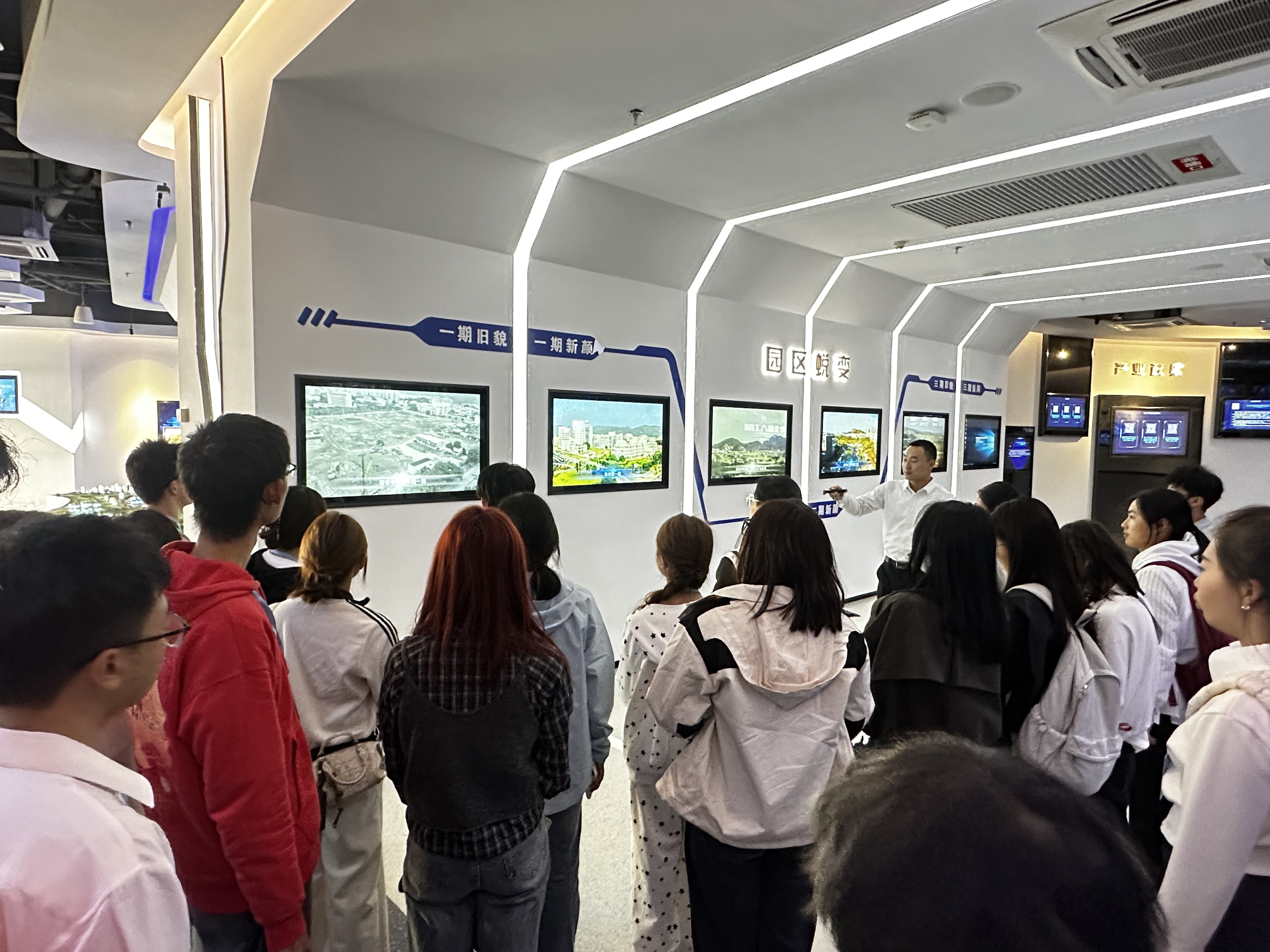 在厦门软件园三期展厅,工作人员围绕“跨岛发展、三园联动”,系统讲解园区的整体空间布局和历史发展脉络,以及各企业的入驻情况。师生跟随讲解从园区五大行业细分领域出发,近距离体验不同领域下如梦加网络、云知声、亿联网络、旷时科技等企业产品的多场景应用,直观感受园区的科技创新和企业活力。园区在建设中积极完善配套设施措施、搭建资源服务平台体系,为我院大学生创新创业园的优化发展提供了范本参考。