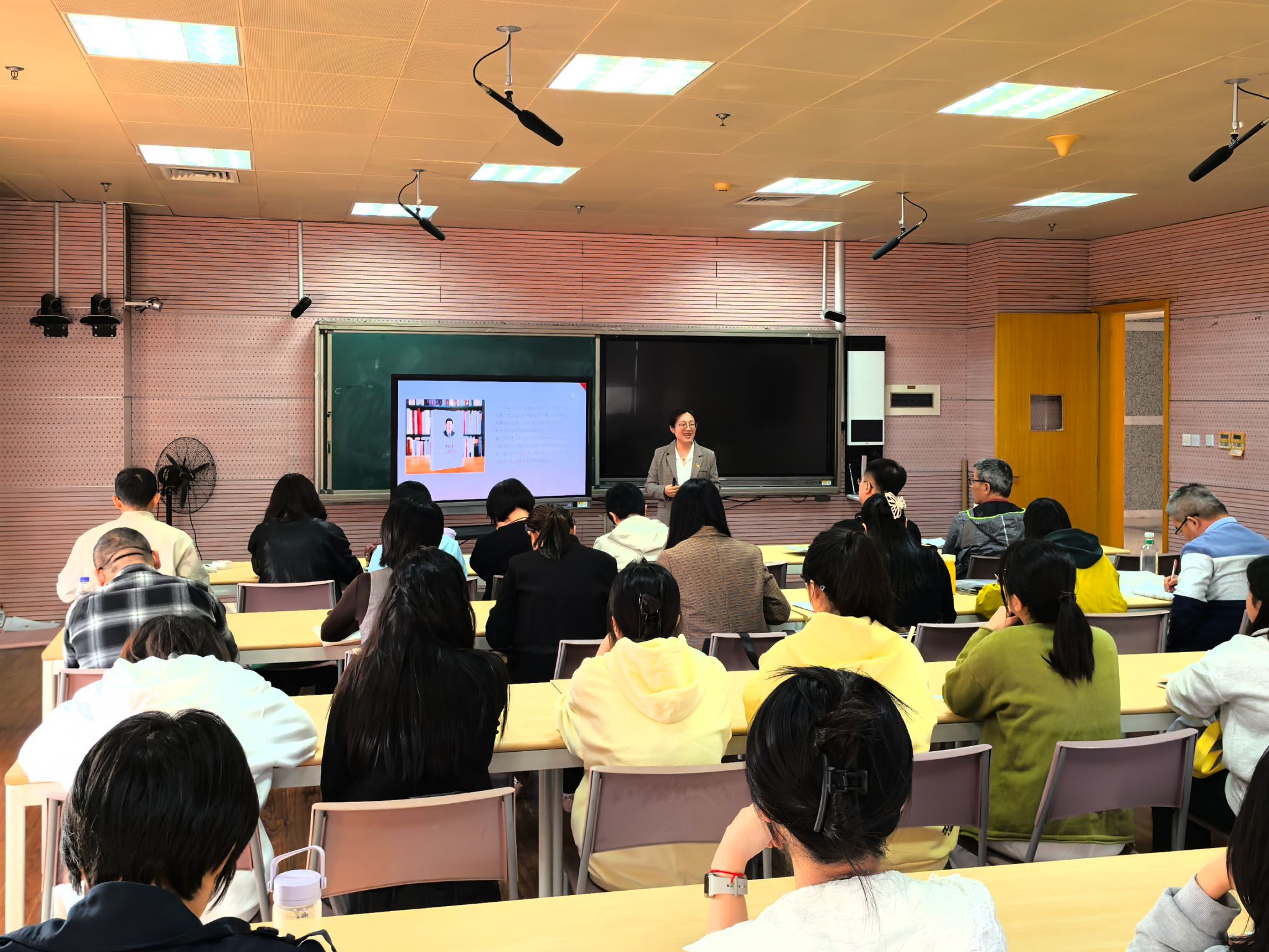 11月26日下午,外语系党总支在景祺楼6楼智慧教室集体学习《习近平谈治国理政》第五卷,开展“中国共产党人精神谱系”专题讲座,讲座以“坚定制度自信 传承精神谱系 迈向伟大复兴”为题,特邀马克思主义学院副教授林颖担任主讲,全系师生党员参与学习。