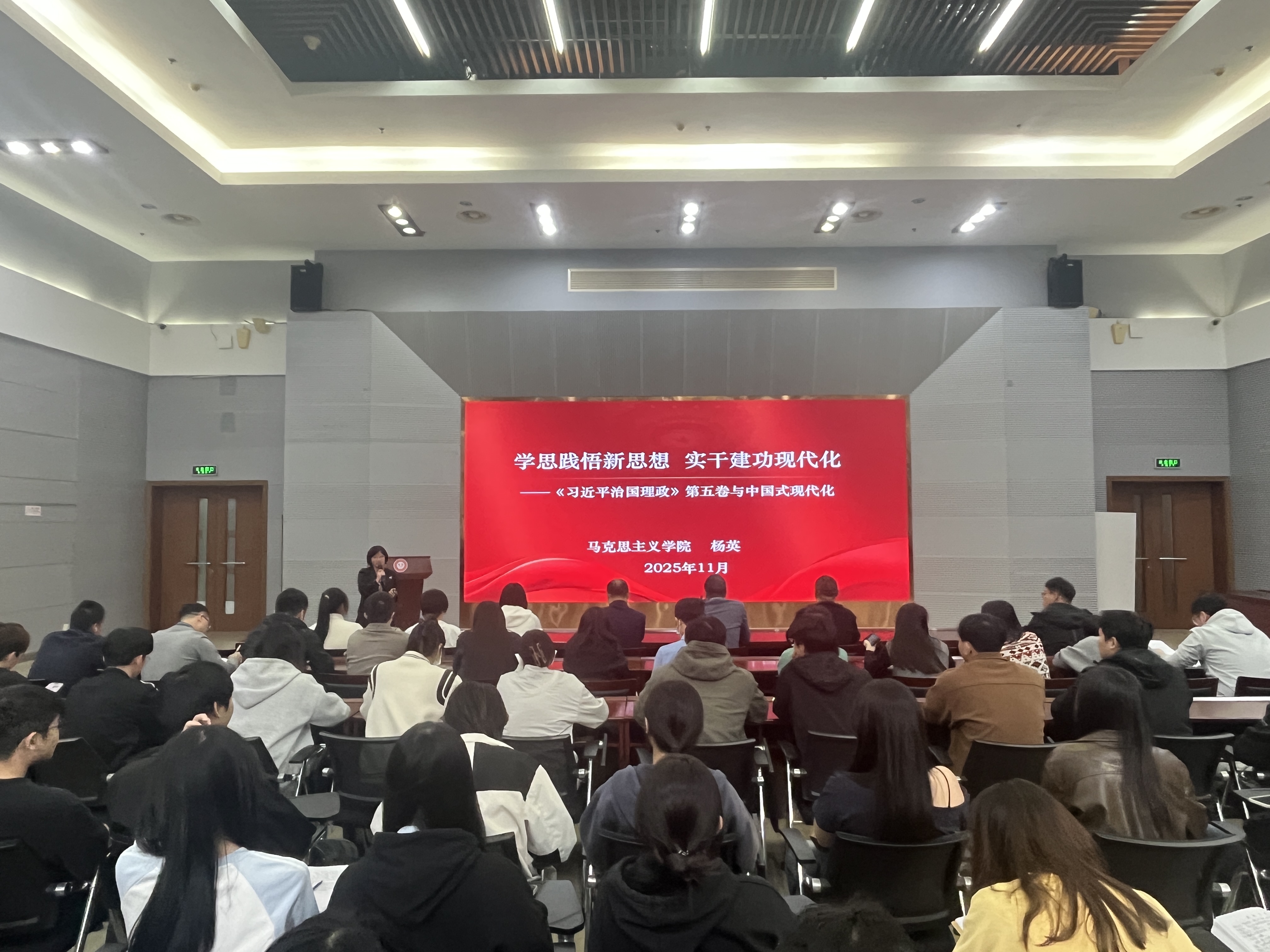 杨英从“时代方位、理论精髓、改革蓝图、实干路径”四个维度,对《习近平谈治国理政》第五卷进行系统阐释。讲座紧扣“从‘中国之制’到‘中国之治’的历史主动”,深入解码中国式现代化的叙事逻辑与文明新形态,详细解读“十五五”时期改革发展的行动纲领,深刻剖析如何把制度优势更好转化为治理效能。