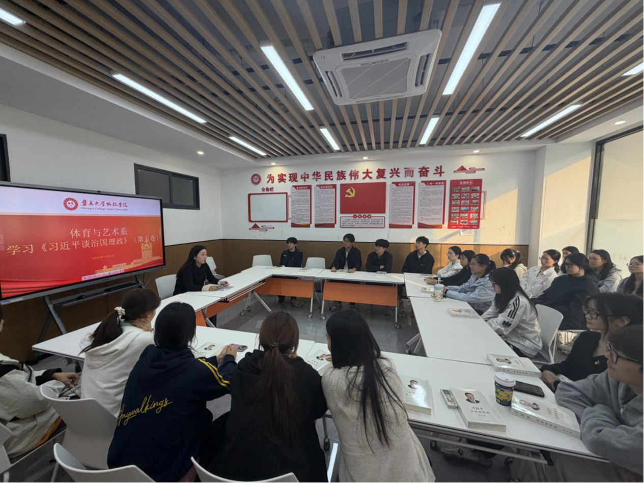12月3日,体育与艺术系党委在“一站式”学生社区组织学生党员集体学习《习近平谈治国理政》第五卷。系党委组织员陈婧负责组织并领学,鼓励学生党员要深化政治理论学习,把《习近平谈治国理政》第五卷作为政治成长的案头卷、必修课,深刻领悟习近平新时代中国特色社会主义思想蕴含的世界观与方法论,筑牢思想根基,强化使命担当,把学习成效转化为实际行动,为推进强国建设、民族复兴伟业贡献青春力量。集体学习之后,全体党员在党旗下庄严宣誓,重温入党誓词。