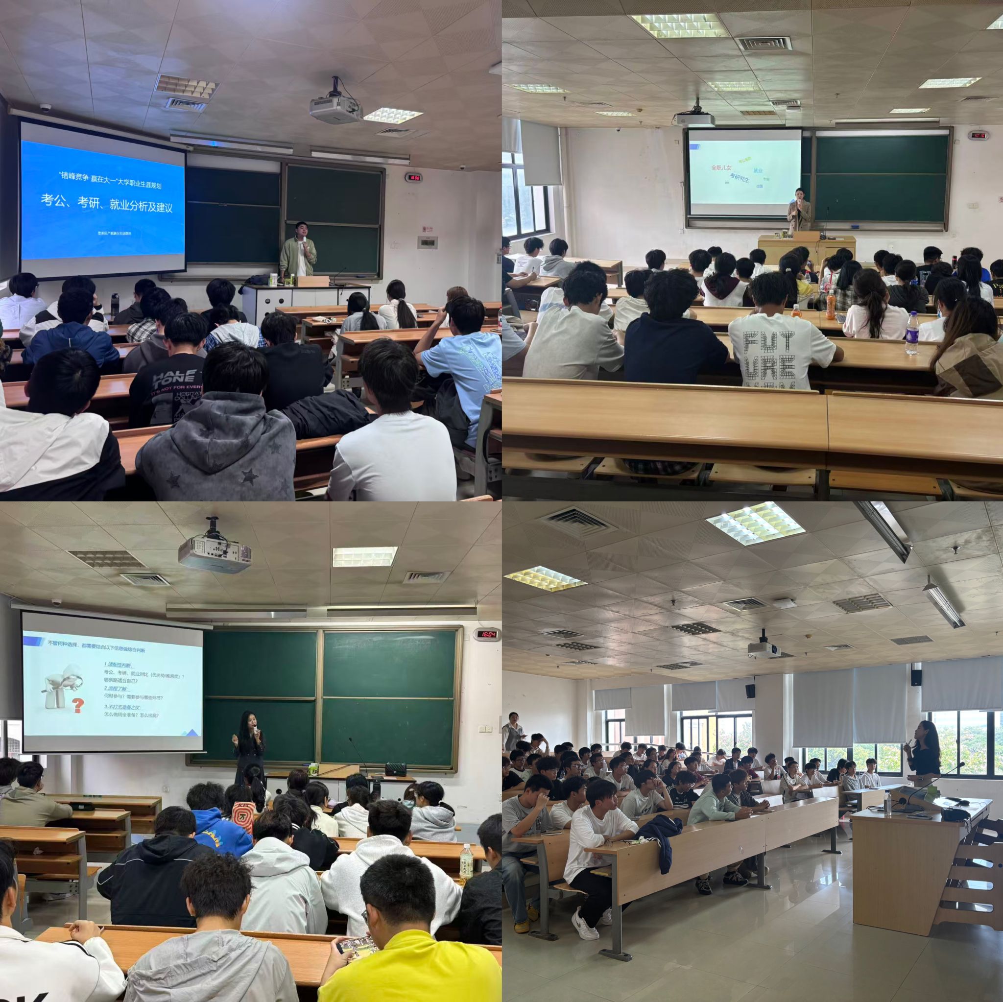 针对新生普遍关心的未来发展方向选择难题,企业导师们在讲座中用详实数据剖析了考研、考公、直接就业三条路径的优劣势与难易程度:考研平均录取率约30%,考公岗位竞争比高达70:1;而在就业市场中,三个专业对口的嵌入式开发、工业自动化、智能装备研发等岗位需求持续旺盛,但应届生需提前通过实习积累项目实操经验,才能在求职中占据优势。同时,他们还结合不同专业的技术壁垒与行业趋势,分别解读了技术类、应用类等多类岗位的能力要求,为不同专业新生精准锚定职业方向。此外,导师们还分享了专业技能提升技巧与实践经验积累方法,反复强调“早规划、勤实践”的重要性,鼓励新生从大一就树立目标意识,主动对接行业需求。
