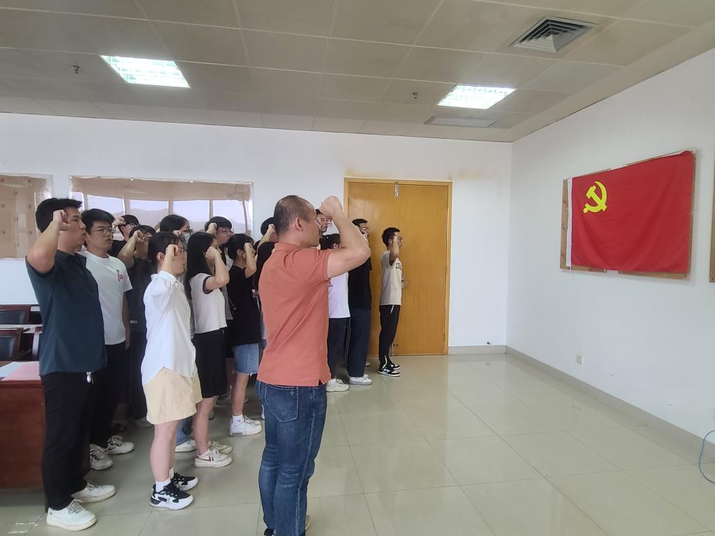 为庆祝中国共产党成立102周年,贯彻落实主题教育学习,不断提升党员队伍建设,6月20日,智能制造与机械工程系党总支在景祺楼12楼会议室组织开展新党员入党宣誓活动。