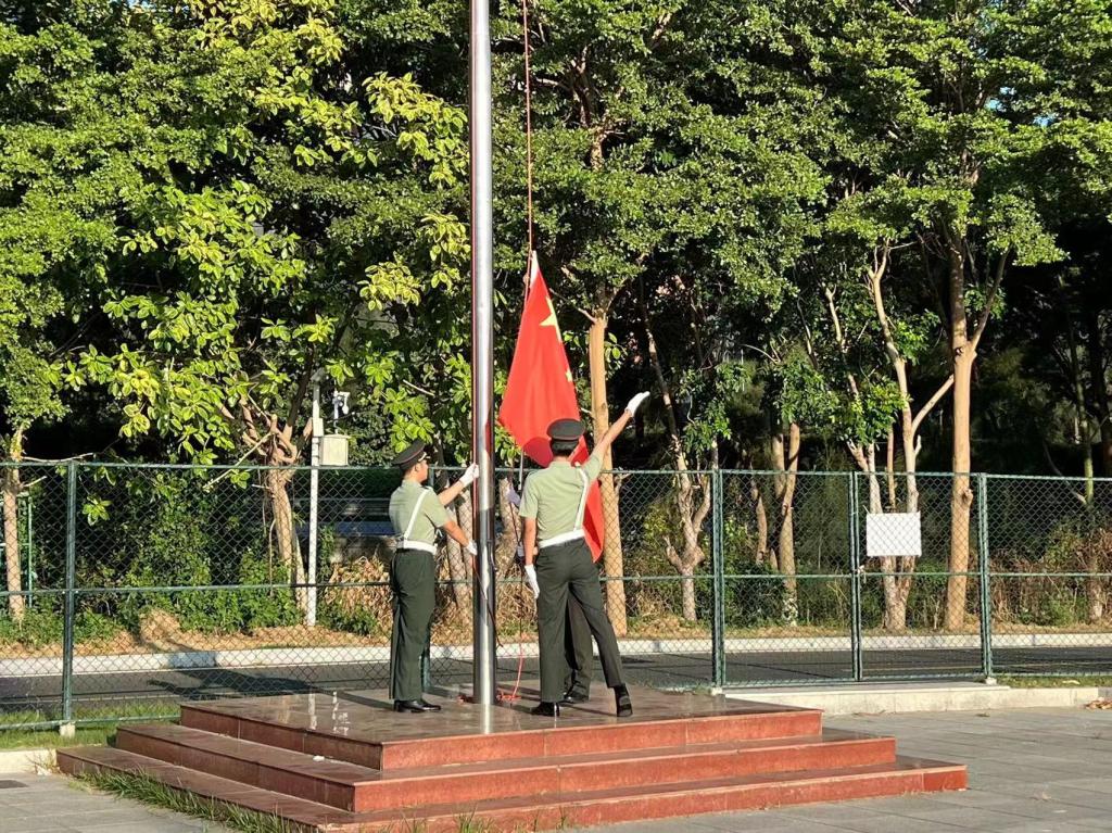 国旗护卫队护送国旗,国歌的旋律响起,国旗在风中缓缓升起,全体师生向国旗行注目礼。升国旗仪式后,杨琳在国旗下讲话中讲述了新时代爱国主义精神,号召青年学子向着目标奋发努力,要坚定理想信念,不断掌握真才实学,用实际行动谱写爱国爱校青春篇章。同时她重点面向自动化专业同学和全体本科新生介绍了智能制造与机械工程系近年来所取得的主要成绩,勉励同学们要加倍珍惜自己的大学时光,细心规划,合理安排学习生活,高效学习,做胸怀家国砥砺奋进的传承者,做脚踏实地扎根奉献的担当者,为“一流诚毅”建设添砖加瓦。