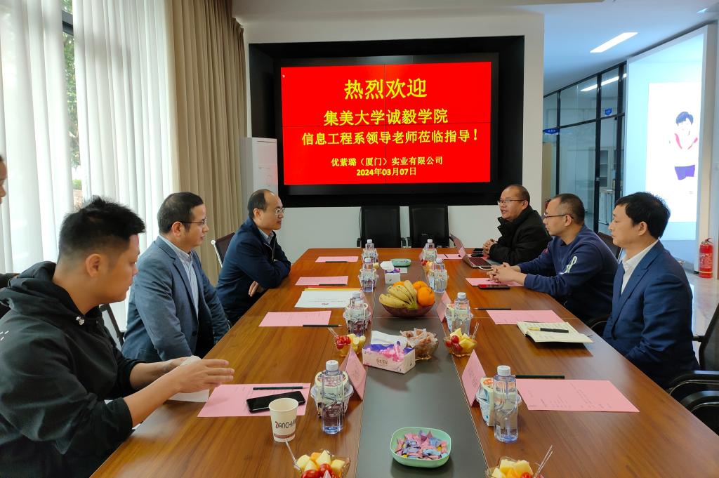 3月7日下午,信息工程系主任魏德志、系书记李达瑞、系办公室主任、计算机网络教研室主任一行走访优紫璐(厦门)实业有限公司。