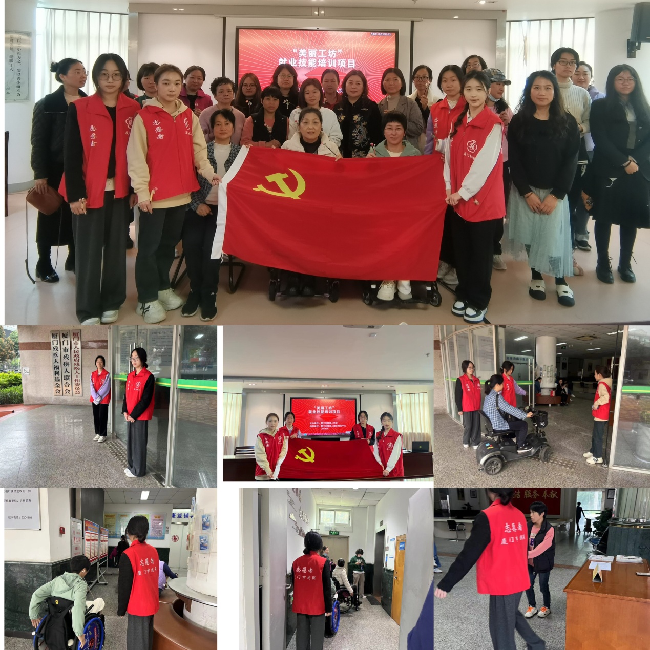 为推动残障人士就业工作的发展,提升残障人士就业技能和综合能力,3月8日,由厦门市残联和厦门市肢残人协会共同举办的“美丽工坊”就业技能培训班在厦门市残联大厦开班。经济系“党员先锋队”助残志愿者服务队担任本次活动志愿者。