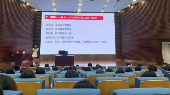 讲座伊始,林清华校友结合自身经历,讲述了大学毕业后起家创业过程中遇到的艰难、挫折、瓶颈,以及自己在一次又一次的逆境中如何思考、学习、突破、成长。而后,她从领导人基因、定方向、组团队、拿结果、推荐创业书籍等五个方面讲述了自己的创业历程。在互动环节中,林清华为同学们进行了PDP测验,并详细讲解各结果对应的不同人格,鼓励同学们正确认识自我,认识他人,从而找到志同道合的同伴。最后,在场同学积极上台互动交流,分享收获与感受。