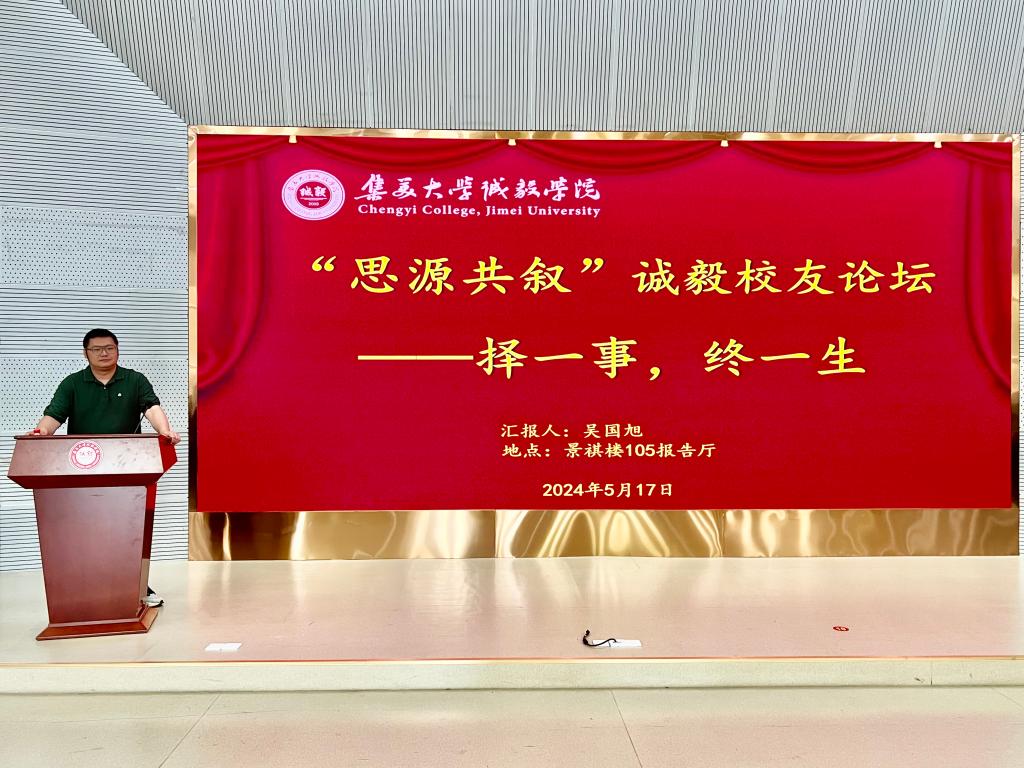为进一步密切校友与学院的联系,充分发挥校友资源优势,搭建校友与在校生的交流平台,鼓励在校生向优秀校友汲取榜样力量,商船系于5月17日邀请2009届交通运输专业校友吴国旭担任“思源共叙”诚毅校友论坛主讲。