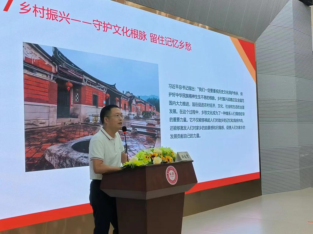 5月30日上午,人文科学系在景祺楼105报告厅举办“文创大讲堂”系列讲座《乡村振兴与在地文化创生——闽南砖雕的传承与创新》。本次活动特别邀请国家一级美术师、闽南理工学院闽南砖雕研究所所长、闽南砖雕非遗代表性传承人胡文贤教授担任主讲嘉宾。人文科学系主任杨锐、专任教师、汉语言文学专业(文创创意方向)学生和部分体育艺术系师生参加了此次活动。