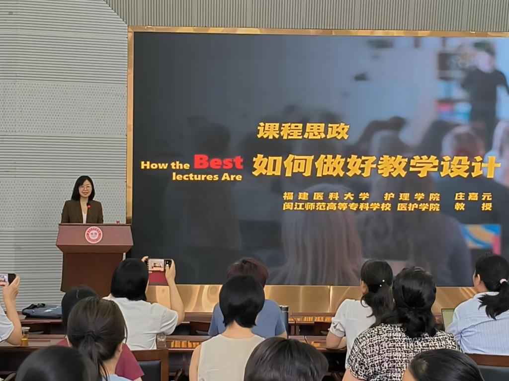 6月27日下午,我院邀请福建医科大学庄嘉元教授在景祺楼105报告厅作“课程思政如何做好教学设计”专题讲座。讲座由教务部主任肖世校主持,全院专任教师参加。