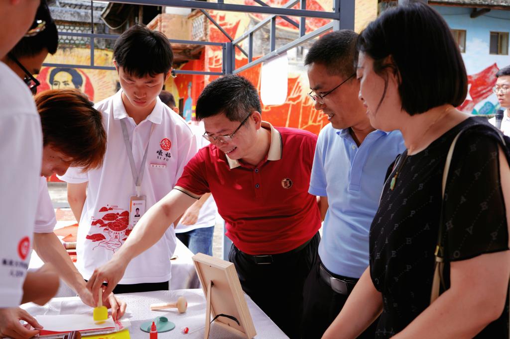 7月5日,副院长陈光田,人文科学系负责人一行前往龙岩市永定区湖坑镇,看望在此实践的“曦福”实践队。陈光田对实践队提出了指导意见,勉励实践队师生要珍惜宝贵的实践机会,勤学善思,自觉担当奉献,充分发挥专业特长,将思想认识和实际行动高度统一,让青春在磨砺中成长,在实干中奋进。湖坑镇党政办负责人卢冠超对实践队的到来表示欢迎,并对队员的近期实践成果给予高度认可。陈光田、人文科学系负责人一行还与“曦福”实践队一同参与了以“五福临门”为主题的福文化创意游园会,活动全程直播,依托新媒体,带领观众“云上”观赏大美湖坑,共同领略中华优秀传统文化魅力。本次活动直播点赞量达4.3万多人次,直播区内观众云集、互动活跃,反响热烈。