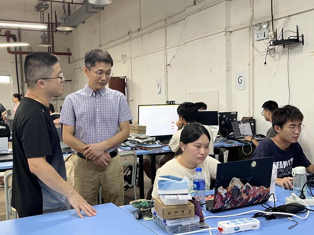 在实训现场,颜承志与备赛师生们亲切交谈,认真听取指导老师的赛事报告,详细了解各参赛队伍备赛进程及存在困难。颜承志对指导教师的辛勤付出给予充分肯定,对备赛师生们炎炎夏日酷热当头仍坚持备战、高效训练表示高度赞赏。他勉励大家一方面要坚定信心、勇于挑战,赛出风格、赛出水平,另一方面,更要注意防暑降温,劳逸结合,注意身心调节,确保生活安全、训练安全、比赛安全。